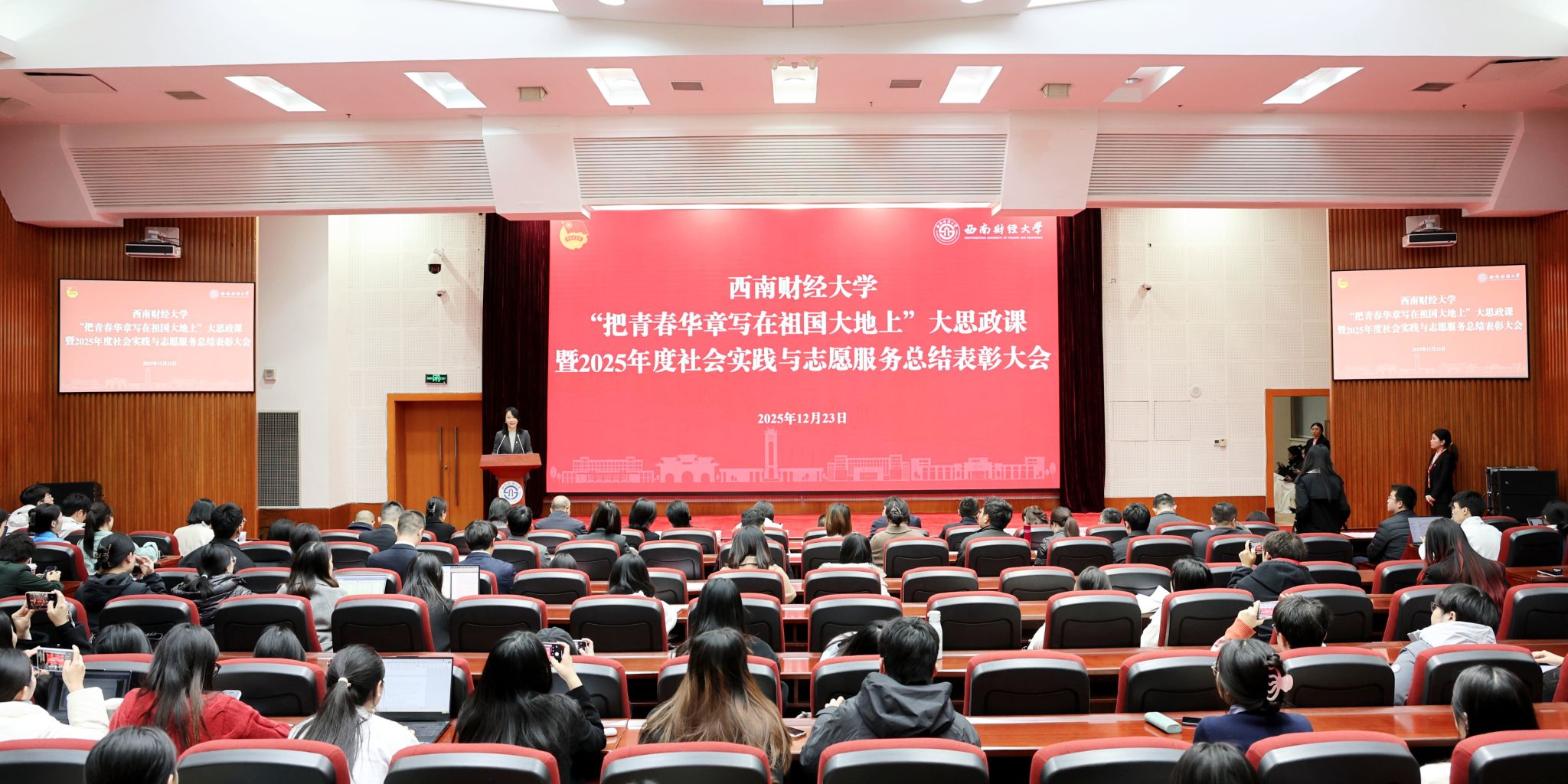12月23日,“把青春华章写在祖国大地上”大思政课暨2025年度社会实践与志愿服务总结表彰会在柳林校区腾...
