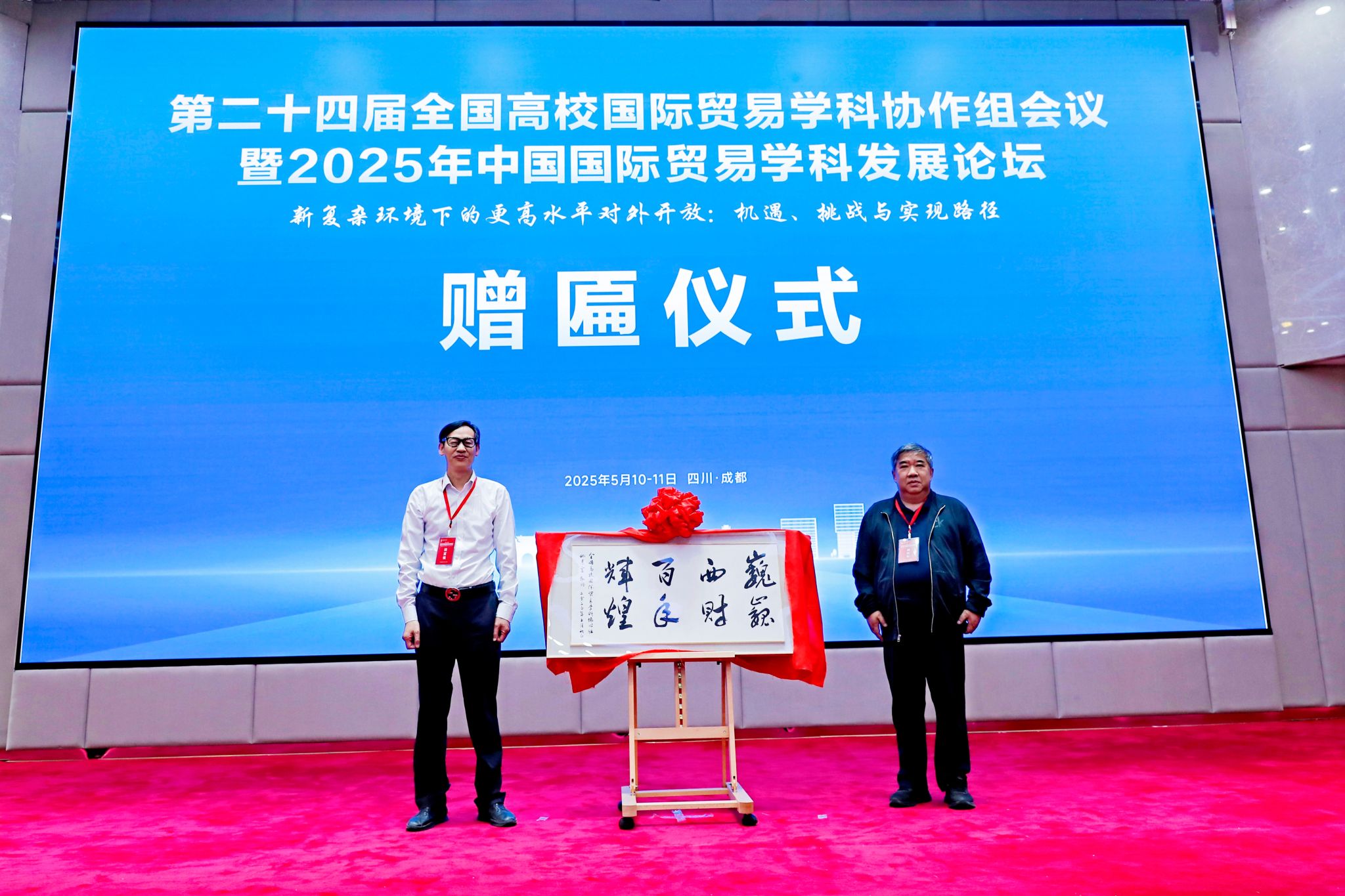 开幕式上,协作组向学校赠送百年校庆纪念牌匾,以此致贺学校百年办学历程,体现学界对学校国际贸易学科建设与学术贡献的持续关注与支持。