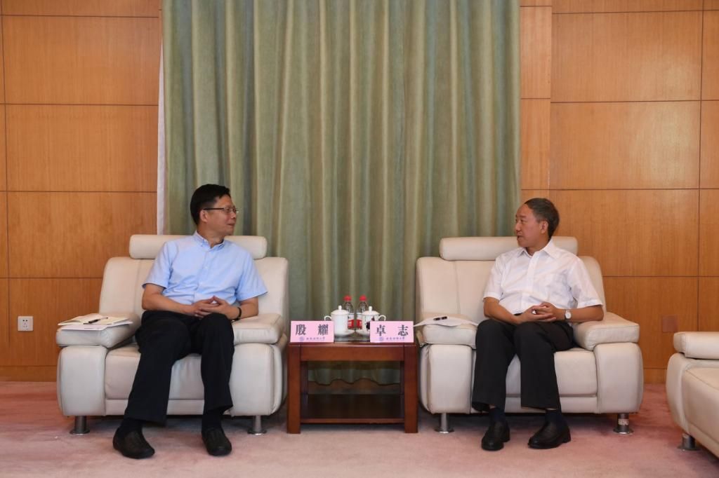 8月27日,上海对外经贸大学党委书记殷耀等一行4人到访我校。校长、党委副书记卓志在光华楼贵宾厅会见来宾,校长办公室、组织人事部和发展规划处负责人参加会谈。