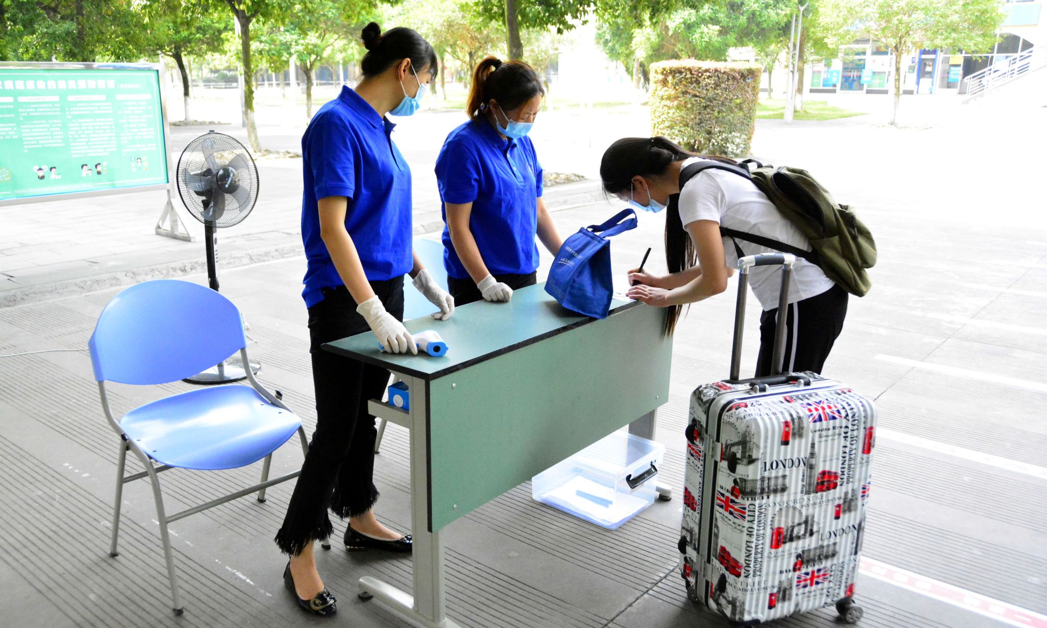 “欢迎回家!”在柳林校区南大门排队等候区,赵德武、卓志向返校报到的同学送上亲切问候。他们与家长、同学亲切交谈,表达学校关心和对学校疫情防控工作理解支持的感谢。“今天返校的总人数有多少?有无异常情况?”在流行病学调查区,赵德武、卓志前往各学院(中心)点位详细询问工作情况,翻阅记录资料,要求工作人员一定要把工作做到细处,全力做好学生返校复课的相关工作。