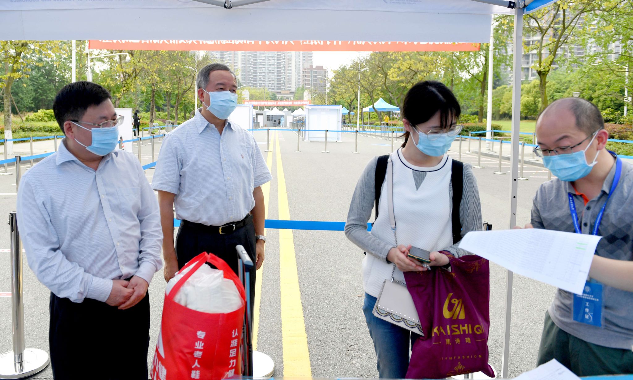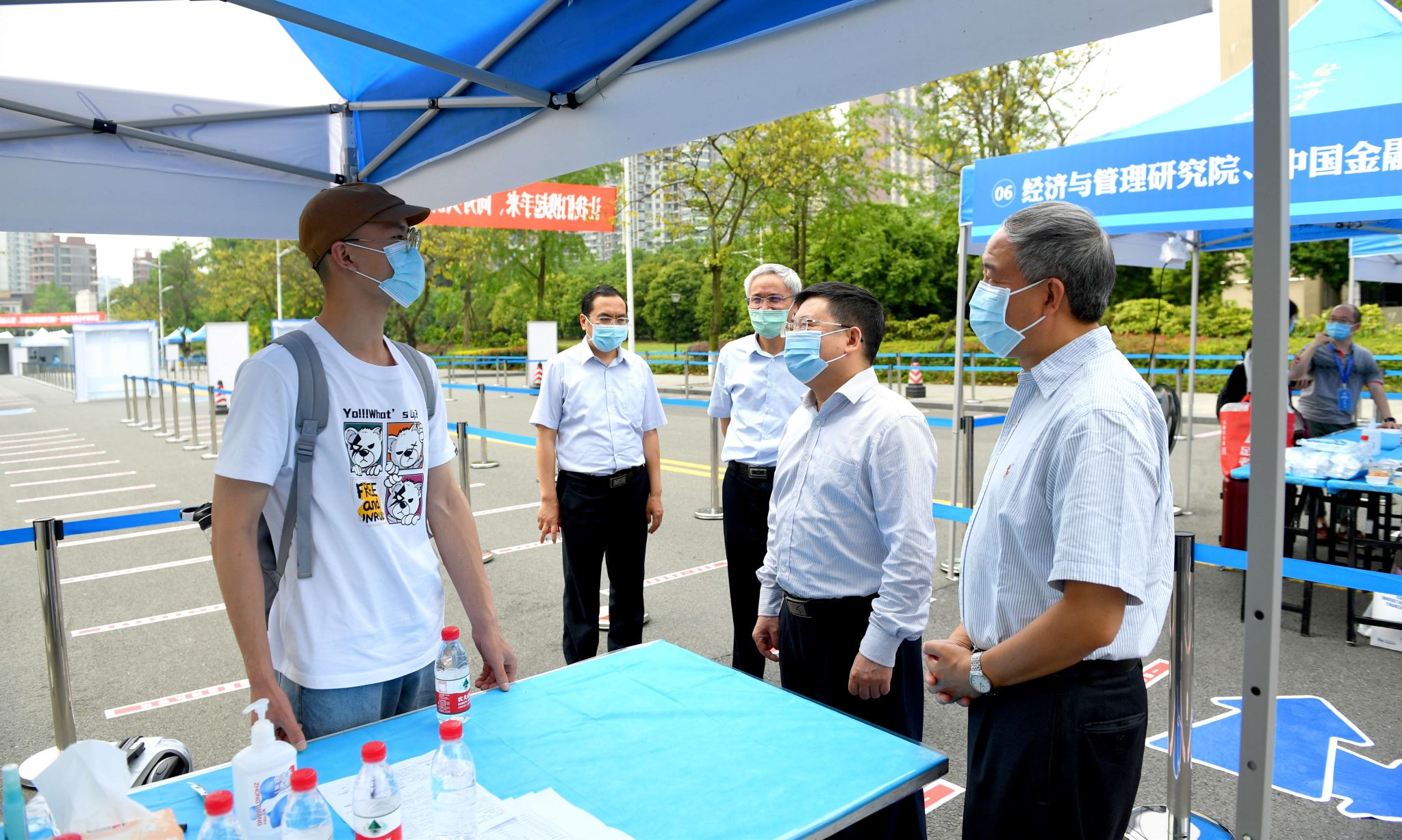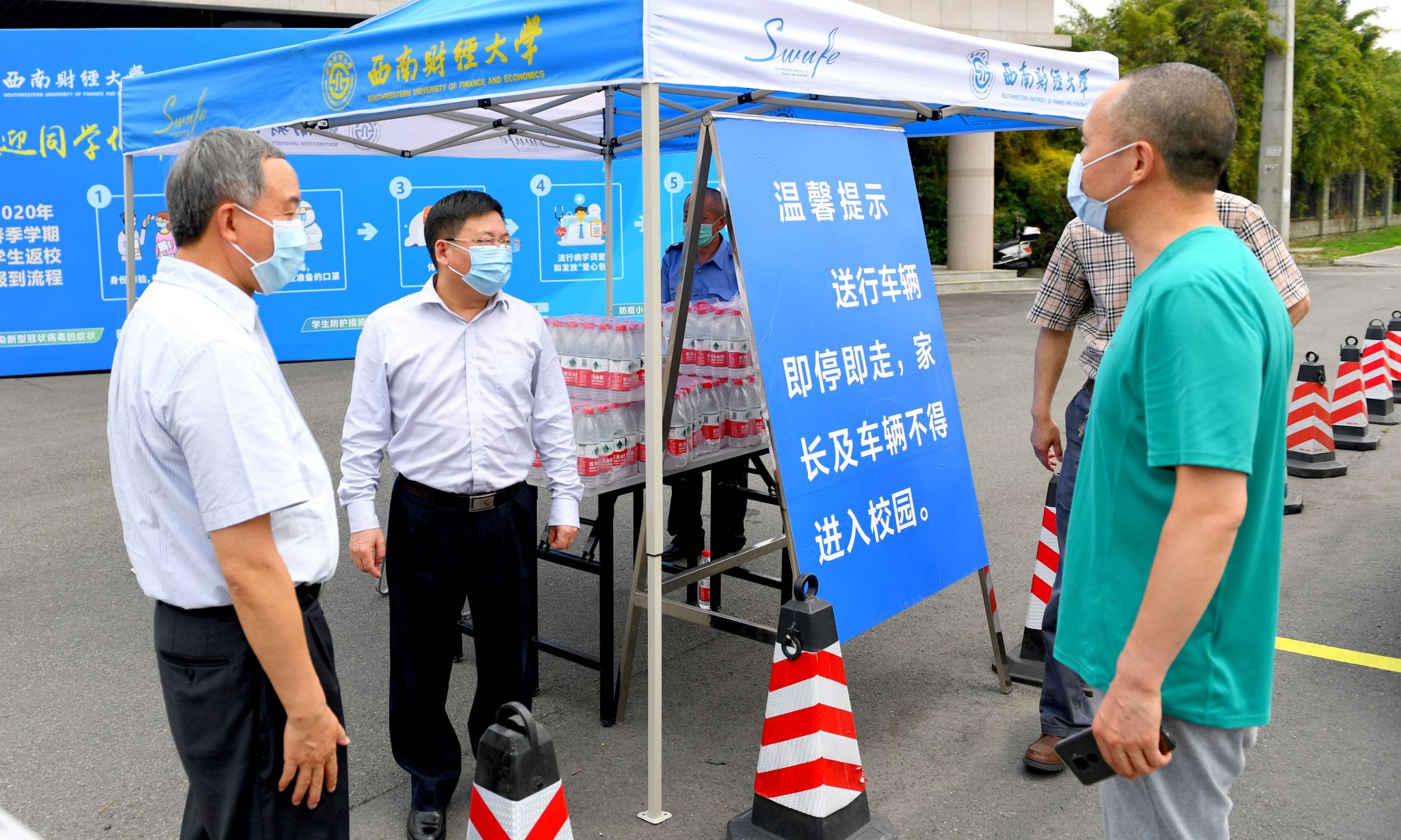 上午,党委书记赵德武,校长、党委副书记卓志等校领导来到返校报到点。