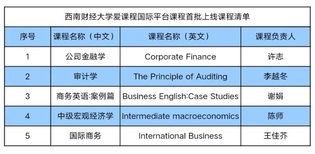 爱课程国际平台首批上线课程来自53所国家“双一流”高校和7所专业特色高校,覆盖医学、科学、工程、农业、经济、艺术、智能、创新创业八类前沿领域,旨在疫情期间免费向全球学习者分享“中国质量、世界水准”的在线开放优质课程。我校积极响应教育部号召,经过细心筹备、精心打磨,推荐的《公司金融学》《审计学》《商务英语:案例篇》《中级宏观经济学》《国际商务》5门课程入选。