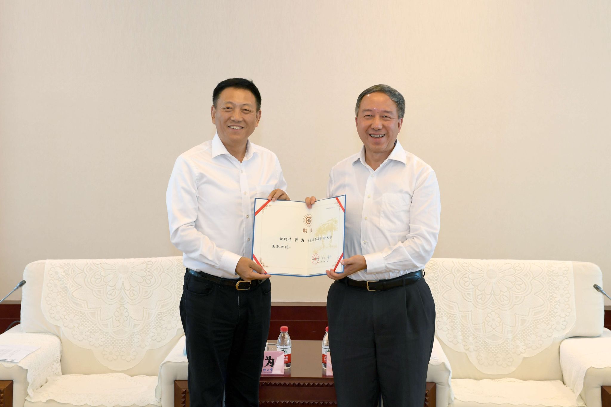 学校聘任郭为为兼职教授,卓志向其颁发了聘书。