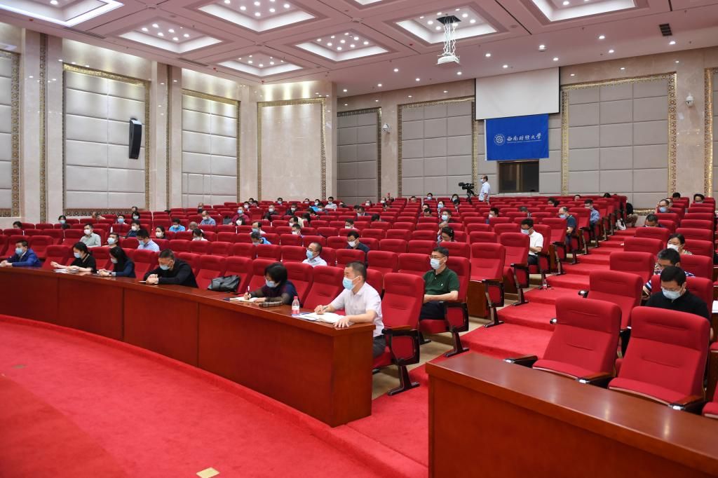 5月9日,学校在柳林校区召开中层干部会议,部署安排复学复课工作。党委书记赵德武,校长、党委副书记卓志,党委常委、常务副校长彭龙,党委副书记马骁,党委副书记曾道荣,党委副书记、纪委书记范卫宏,党委常委、副校长欧兵、尹庆双、史代敏、张邦富、李永强,全体中层正职、学院(中心)副书记参加会议。赵德武主持会议并讲话。