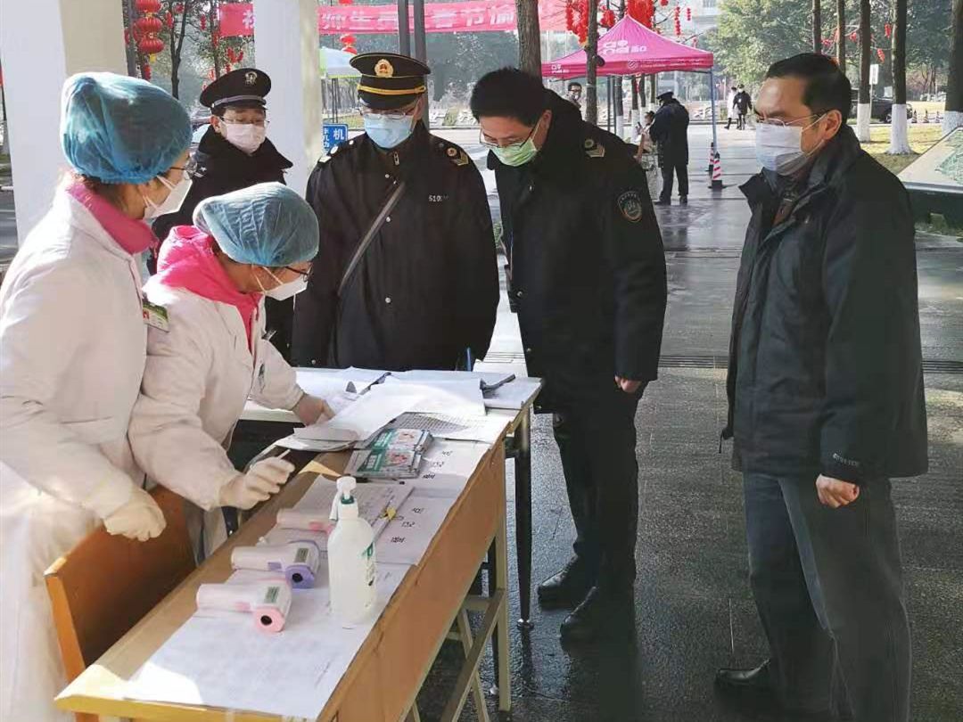 2月9日上午,成都市卫生计生监督执法支队联合青羊区卫生计生监督执法大队对我校光华校区新冠肺炎疫情防控工作进行检查,校党委常委、副校长史代敏,相关部门主要负责人陪同检查。