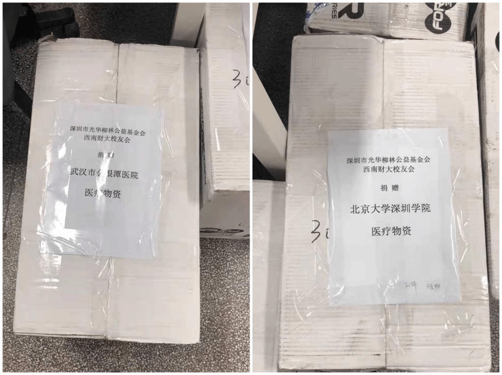 与此同时,各地校友也时刻牵挂母校。得知母校在防控疫情工作中存在一些物资困难,各地校友纷纷行动起来向母校捐款捐物。2月1日,由云南校友会捐赠的一批防护用品首先送达光华校区,极大缓解了学校防控疫情工作的物资压力。