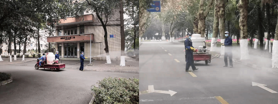 校门、食堂、学生公寓、家属区楼道、公共区域垃圾桶……每天,包括陈德辉在内的30多名校园消毒保洁工作组成员不停地奔走在两校区99个重点区域,他们背着喷雾器,开着消毒车,按时定点开展校园全面消毒,确保环境卫生不留死角,清洁消毒不留空白。