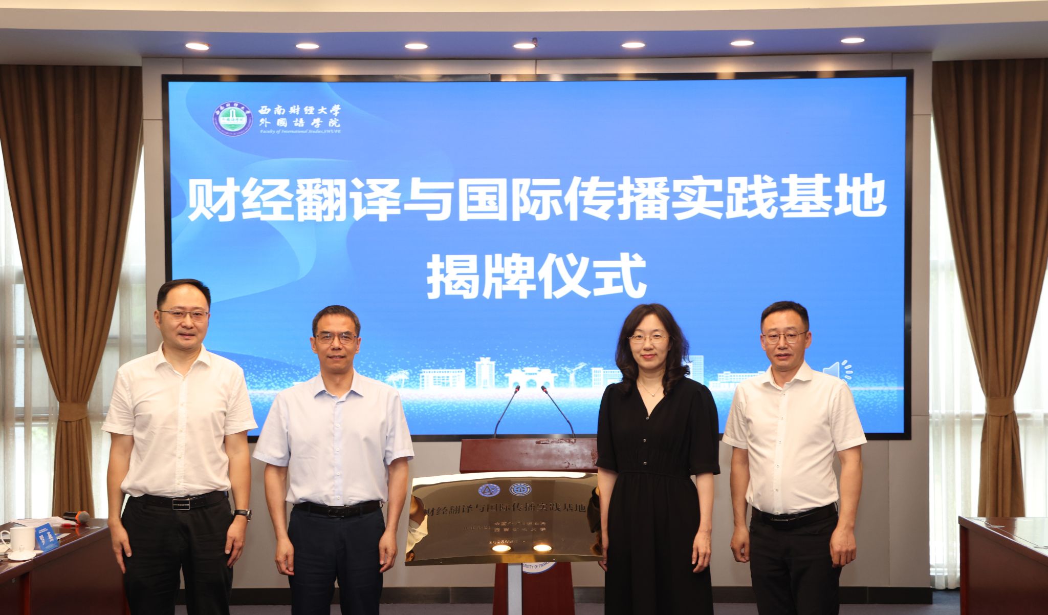 6月19日,学校与中国外文局翻译院共建的“财经翻译与国际传播实践基地”揭牌仪式在柳林校区举行。学校党委常委、副校长李志生,中国外文局翻译院副院长朱颖,四川省高等教育学会高校外语专业委员会会长王欣,四川大学、电子科技大学、西南交通大学等7所高校外国语学院负责人出席仪式,学校外国语学院党委书记严荣主持仪式。
