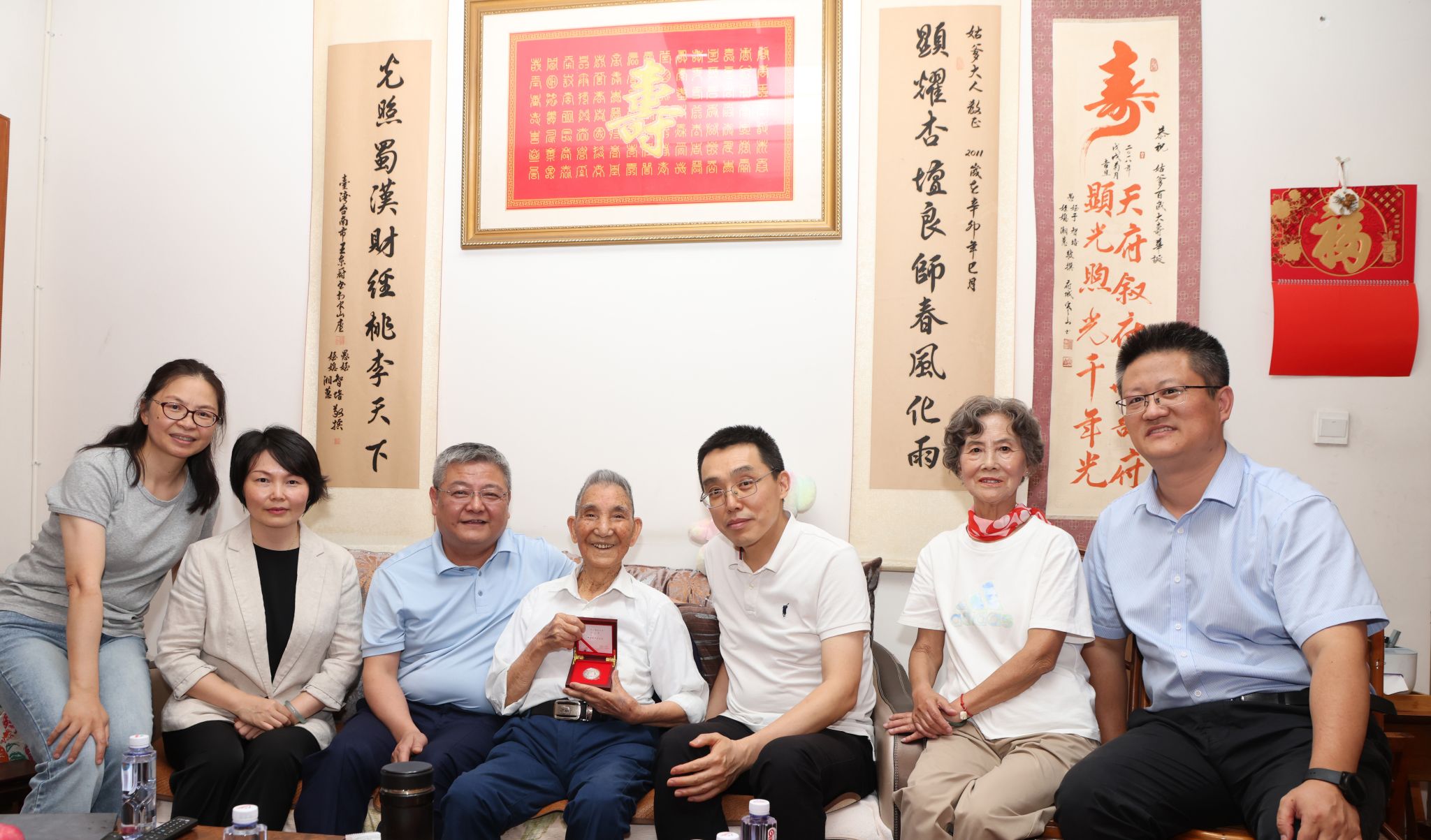 6月20日,成都市副市长、民盟成都市委会主委吴皓看望慰问民盟西南财经大学委员会光荣在盟76年的盟员税显光教授,为其颁发“光荣在盟七十年”纪念章。学校党委副书记谢红参加慰问。