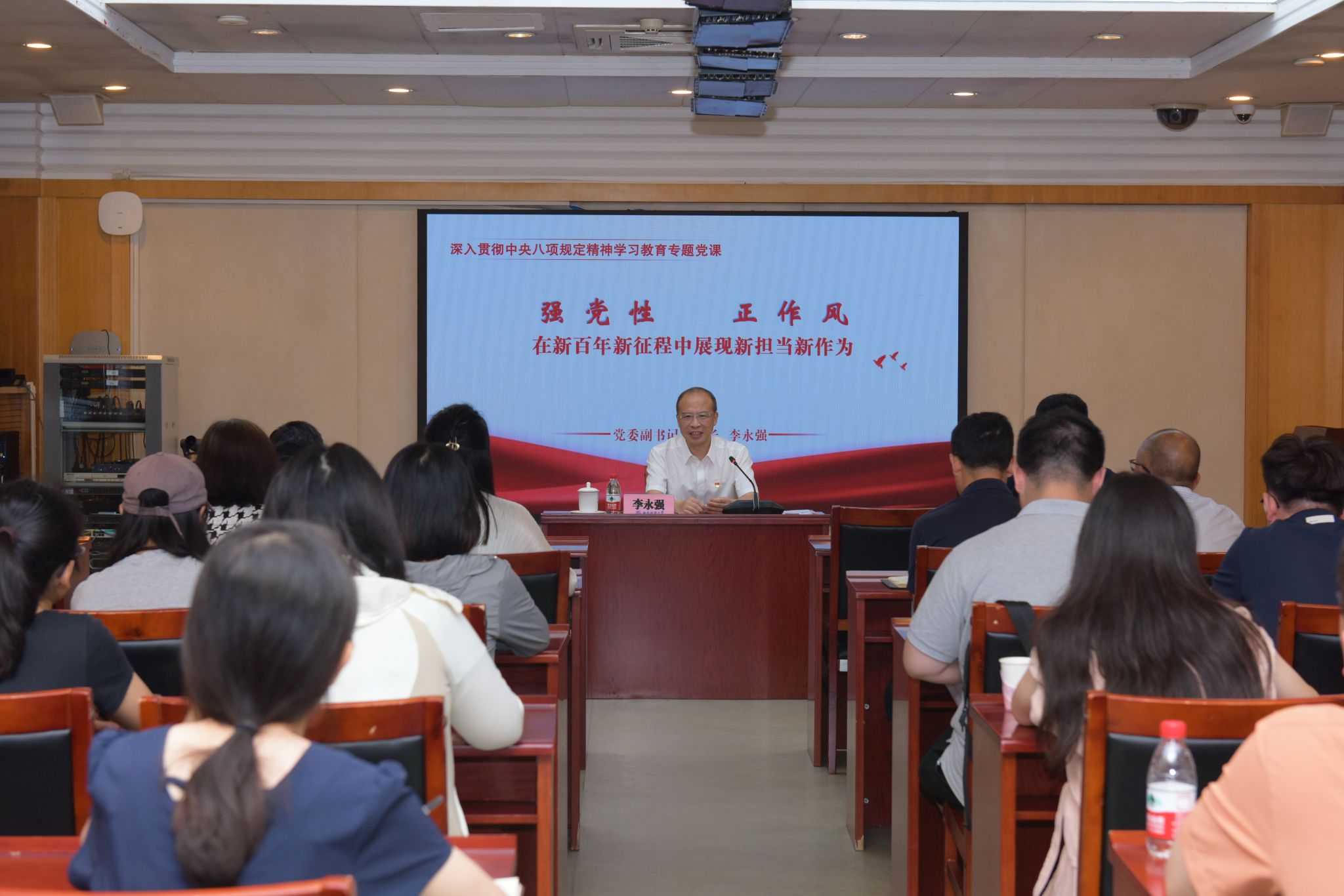 7月9日,党委副书记、校长李永强在腾骧楼101会议室,以《强党性 正作风 在新百年新征程中展现新担当新作为》为题,讲授深入贯彻中央八项规定精神学习教育专题党课。校长办公室、审计处和国际商学院教师第一党支部全体党员同志参加学习。
