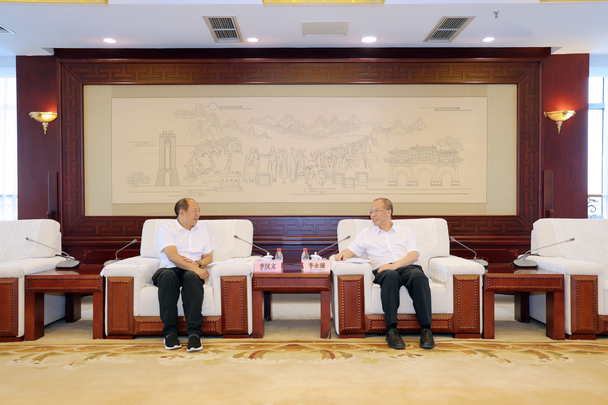 7月18日,贵州财经大学校长李汉文一行来校调研座谈。学校党委副书记、校长李永强会见李汉文一行。贵州财经大学党政办公室、教务处、高等教育研究与评估中心,学校校长办公室、教务处相关负责同志参加座谈。