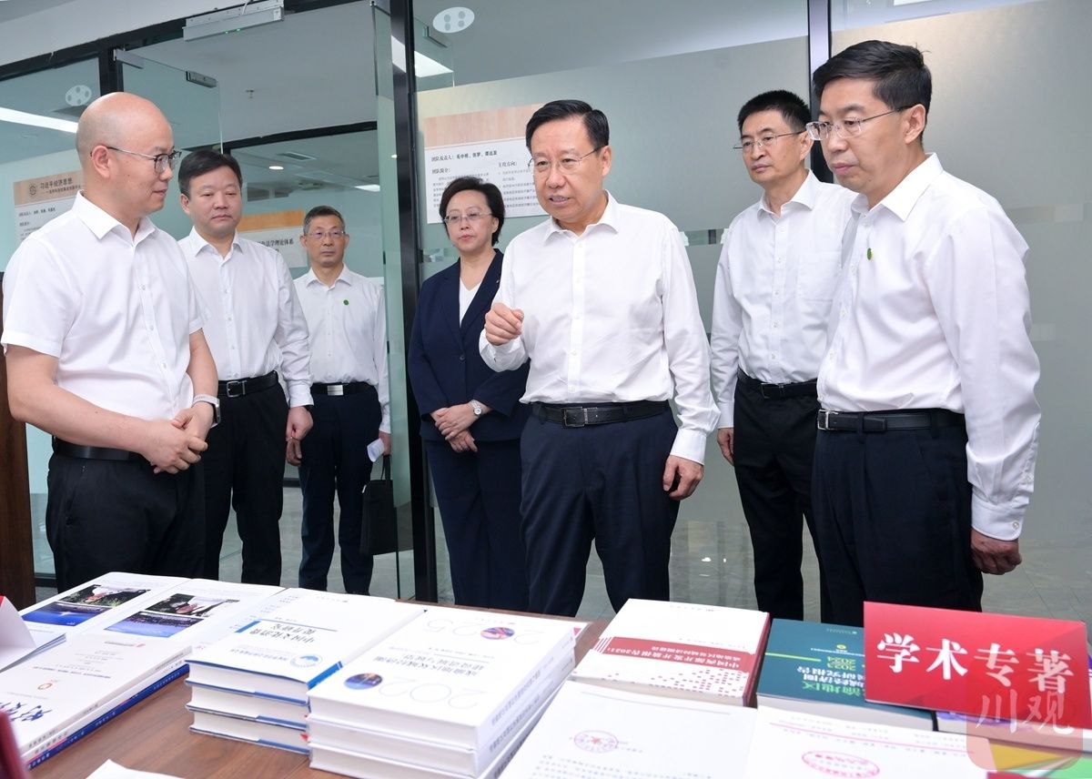 调研中,王晓晖来到西南财经大学柳林校区刘诗白书院、全国中国特色社会主义政治经济学研究中心,详细了解加强习近平经济思想理论与实践研究、经济学基础学科拔尖人才培养、服务国家和区域重大战略实施等情况,对学校在研究阐释习近平经济思想方面取得的成果表示赞赏,对学校长期以来为四川经济社会发展作出的贡献表示感谢。
