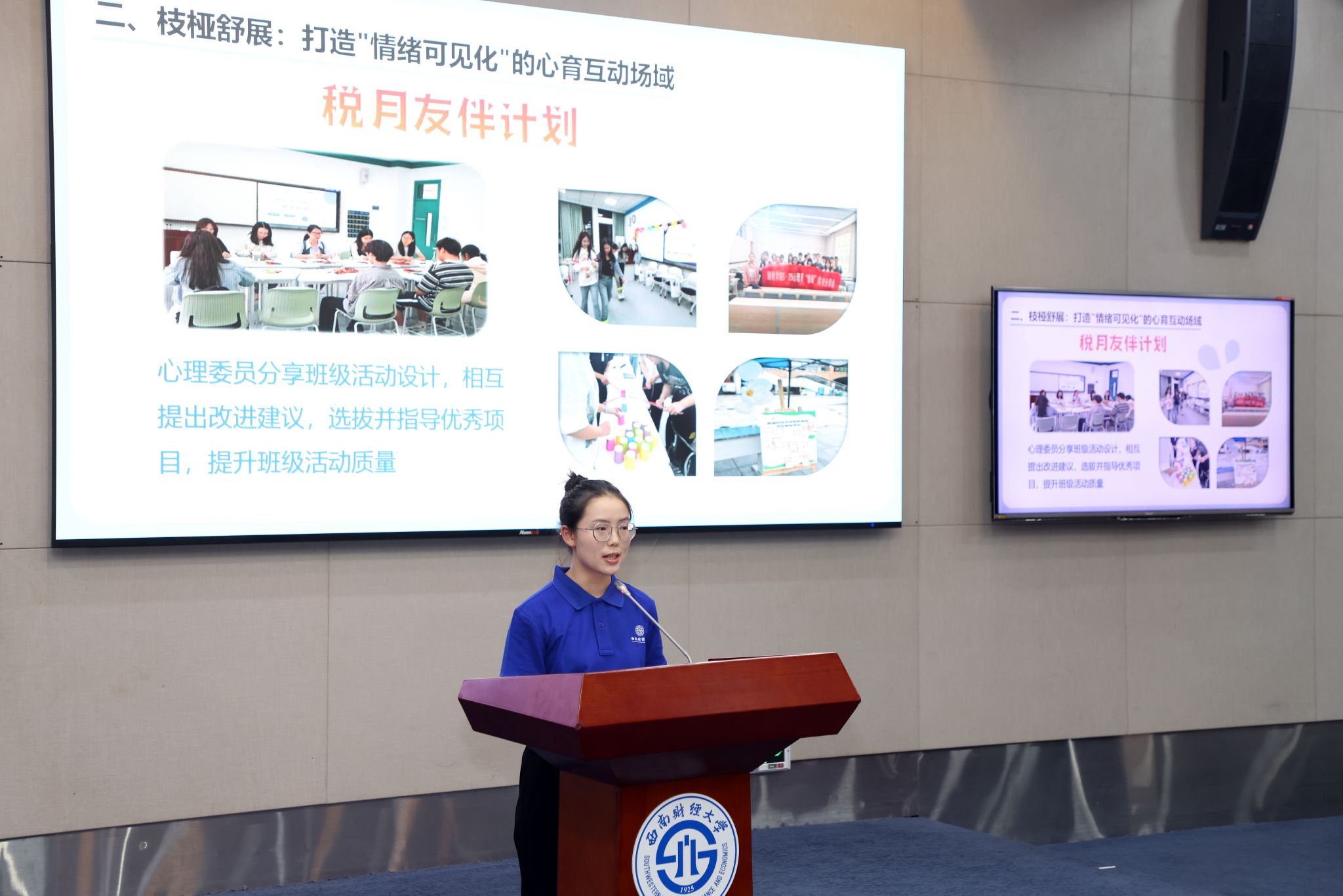 会议集中展示了心理健康教育月活动开展情况,授牌第二批学院(研究院)心理工作示范站,为心理工作先进个人和团队颁奖。管理科学与工程学院党委副书记袁程炜、会计学院学生宋炫慧、财政税务学院学生何春莲分别作为代表交流发言。