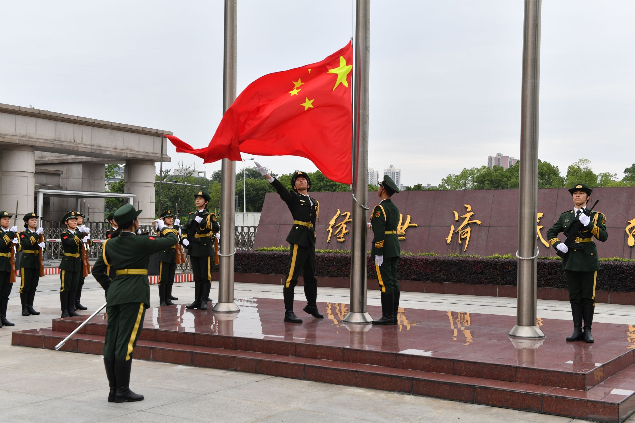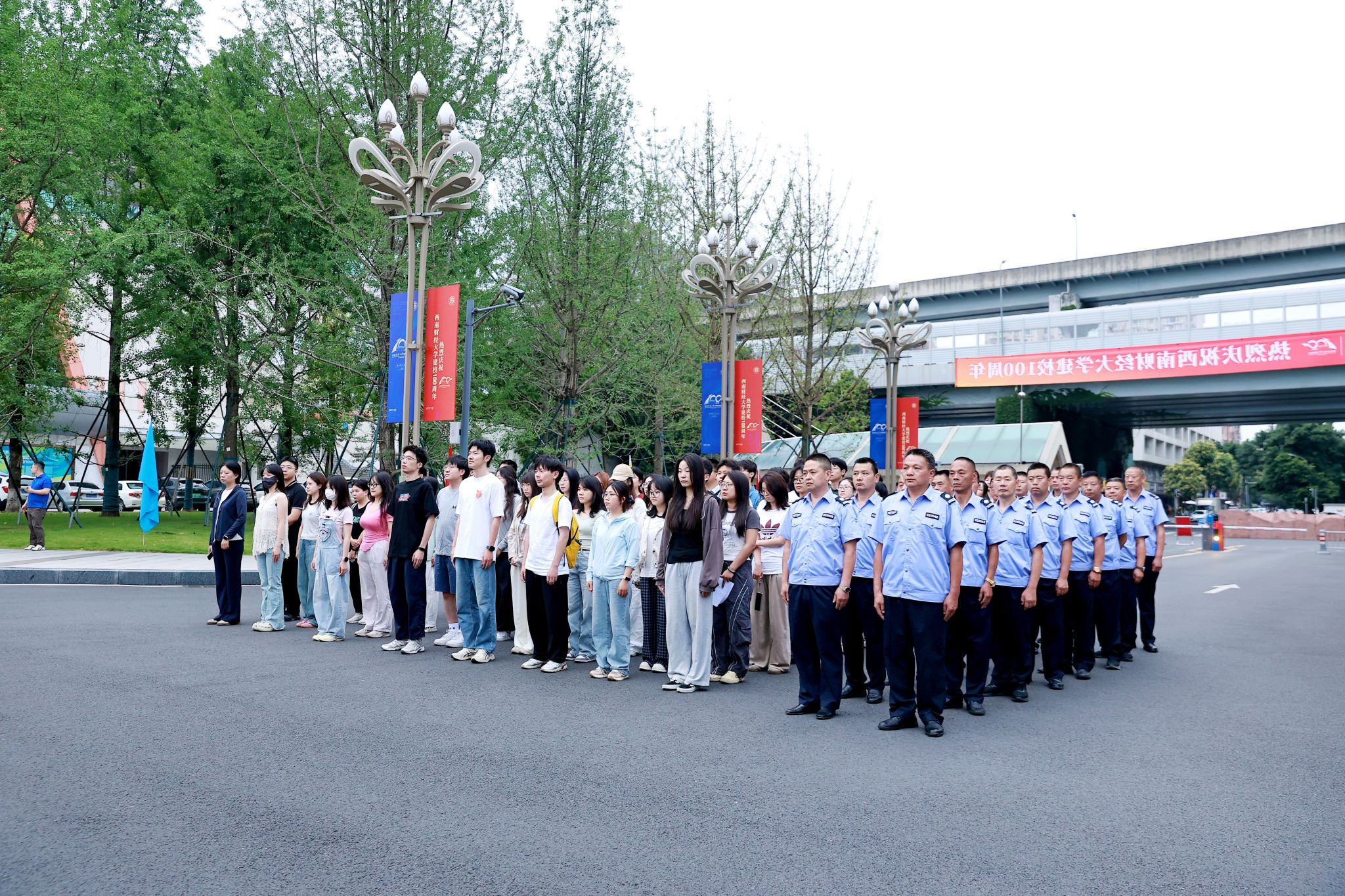 6月3日,伴着清晨的第一缕阳光,西南财大迎来了她的百岁生日。为进一步涵养师生家国情怀、庆祝学校建校100周年,师生齐聚光华、柳林校区北大门广场,举行隆重的升国旗仪式。全体校领导、师生代表、校卫队员、国旗班成员参加仪式。