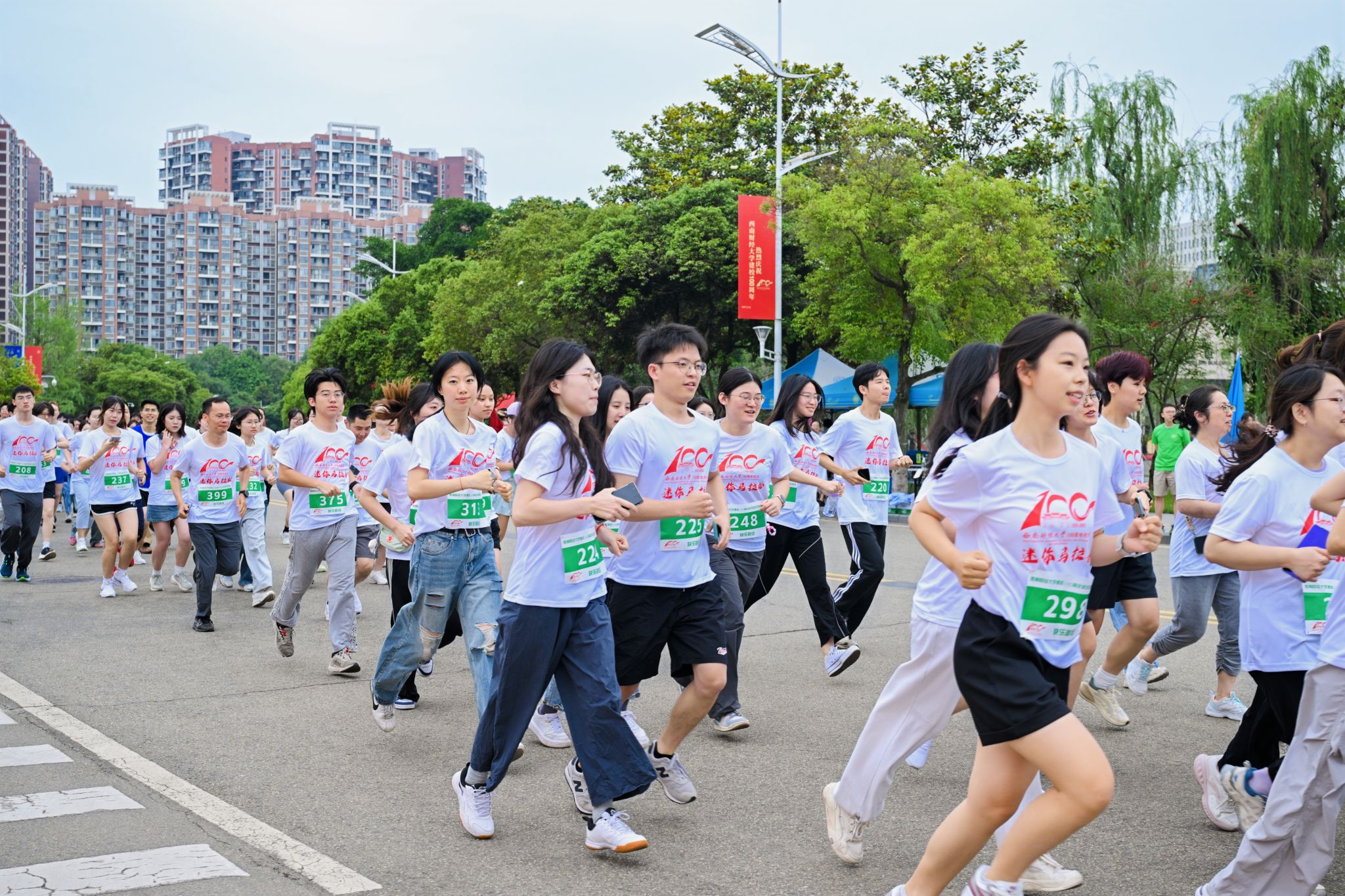 从腾骧楼到北大门的跑步路线,宛如一道世纪之光,映照着黄浦江畔绵延至浣花溪边的日月光华,闪烁着西南财大与民族命运相连、与时代发展共振的百秩星霜。
