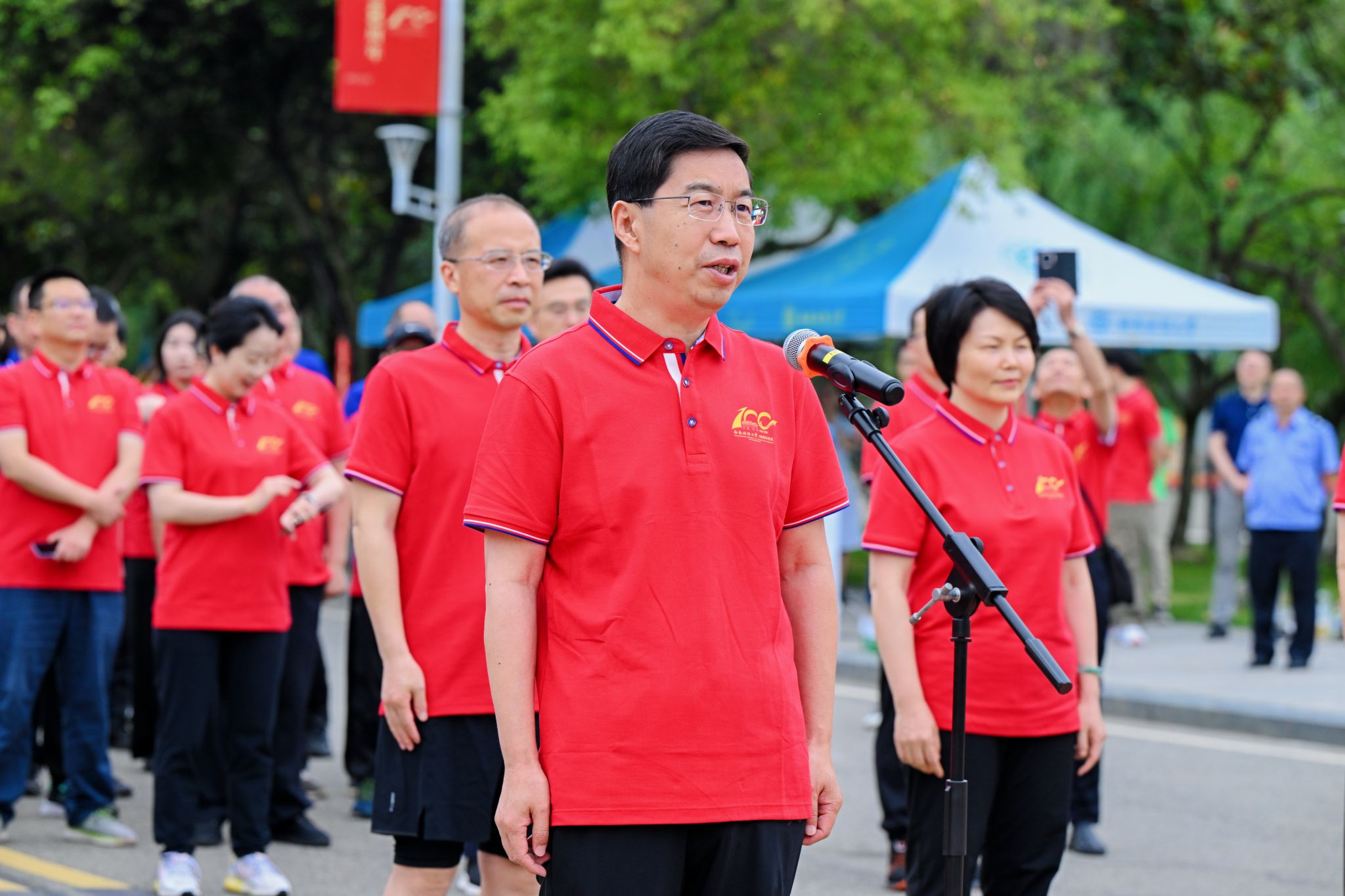 百年文脉灼灼相传,世纪新章朗朗启程。6月3日,迎着初夏第一缕晨光,学校建校100周年校庆健康跑暨迷你马拉松在两校区举行,以寓教于行、积极向上的体育运动献礼学校百年华诞。校领导、全体中层干部、学生代表、教职工代表、校友代表参加活动。