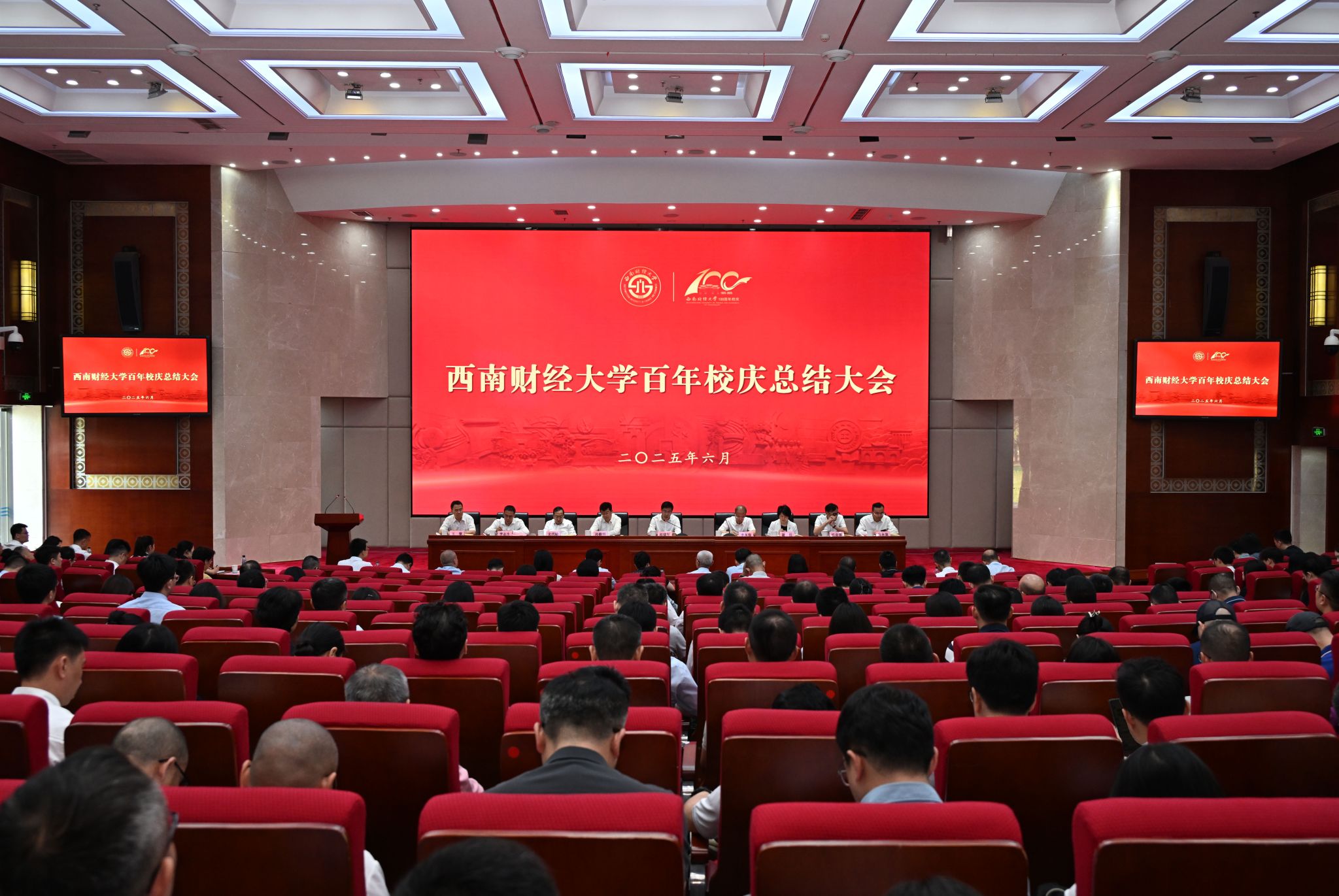赵建军向为校庆工作付出辛劳的同志和全校党员干部师生员工表示衷心感谢。他指出,本次校庆取得圆满成功,必须做好全方位总结,系统回顾、深度提炼、有效转化,进而凝聚人心、汇聚力量、激发斗志、开拓未来。他强调,要深刻领悟百年校庆的里程碑意义与深远价值。百年校庆是一场盛大庆典,更是一堂“历史大课”“思政大课”“实践大课”,必须在更宏阔的历史纵深和时代坐标中,审视其深远价值。从历史维度看,这是一次对办学初心与精神血脉的深情回望与赓续传承;从发展维度看,这是一次对办学综合实力、育人成效、文化底蕴的集中检阅与精彩呈现;从时代维度看,这是一次在时代坐标下凝聚共识、激发斗志的再动员、再出发。要深刻把握百年校庆凝结的宝贵经验与思想启迪。百年校庆的成功实践启示我们,坚持党的领导是根本保证,坚持系统观念是思想方法,坚持改革创新是动力源泉,坚持团结奋进是优良传统;启示我们,庆典是一次宝贵的战略机遇,学术是大学的立身之本,校友是学校的宝贵财富和发展共同体,文化是大学的精神血脉和力量源泉。这些宝贵经验既是对西财精神的生动注解,又是推动学校事业在新时代快速发展的宝贵精神财富。要切实把校庆成果转化为学校高质量发展的强大动能。着力推动精神力量的深度转化,筑牢共同奋斗的思想根基;着力推动财经优势的战略转化,增强大有可为的自信底气;着力推动资源网络的效能转化,拓展开放办学的发展空间;着力推动治理效能的持续转化,激发内涵发展的内生动力,将校庆凝聚的精神力量、彰显的发展优势、汇聚的宝贵资源、积累的治理经验,切实转化为推动学校未来发展的强大动能。赵建军强调,面向未来,全校党员干部师生员工要更加紧密地团结在以习近平同志为核心的党中央周围,高举中国特色社会主义伟大旗帜,牢记“为党育人、为国育才”初心使命,以“归零”的心态再出发,以“赶考”的状态勇争先,以“奋斗”的姿态创一流,将庆祝活动激发出的澎湃热情和强大正能量,转化为推动学校内涵式高质量发展的不竭动力,为加快建设财经特色鲜明的世界一流大学而不懈奋斗,为全面推进强国建设、民族复兴伟业作出新的更大贡献。