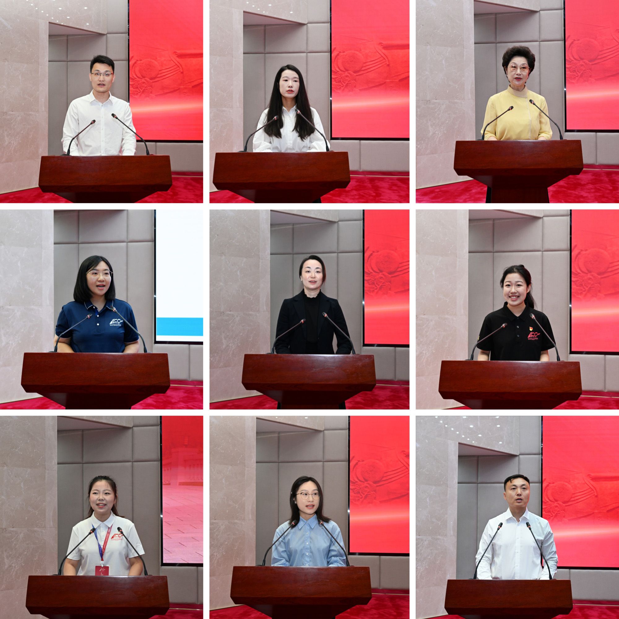 文稿组孙晓东,发展规划处王静,重庆校友会会长张义,党委宣传部闫文静,文艺晚会编导、人文与艺术学院万盛,起点话剧团副团长秦怡,青年志愿者协会会长张蕴琦,后勤服务总公司马明思,保卫处王泽超等深情回顾了共庆学校百年华诞的难忘与感动,结合自身工作总结分享了成效及感悟。