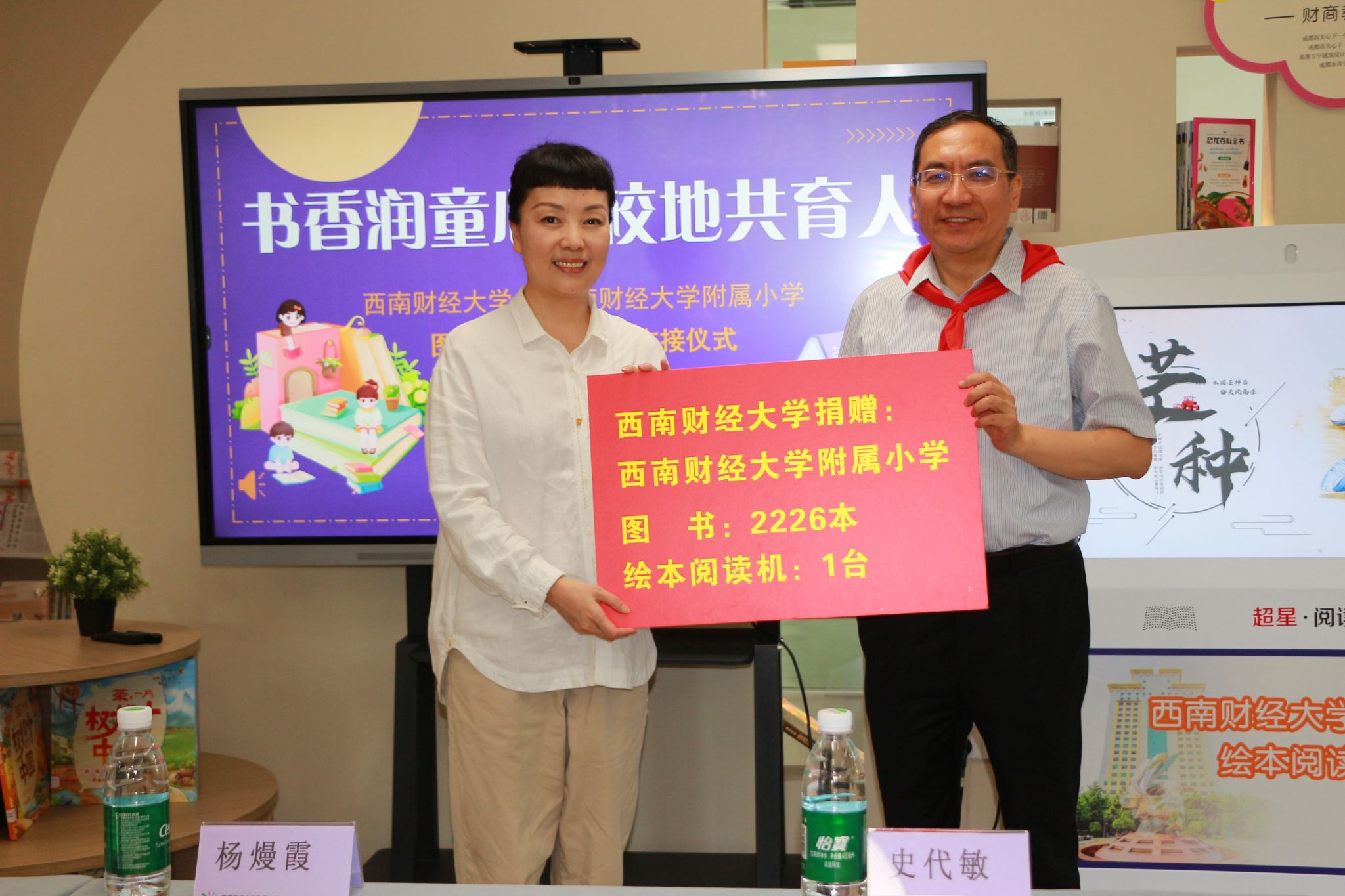 为进一步加强校地合作共建,深化全民阅读活动,营造“书香校园”氛围,“六一”儿童节前夕,学校特向西财附小捐赠一批精心挑选的图书及智能阅读机1台,助力附小打造爱心图书室,提升优质阅读环境,培养儿童阅读习惯。