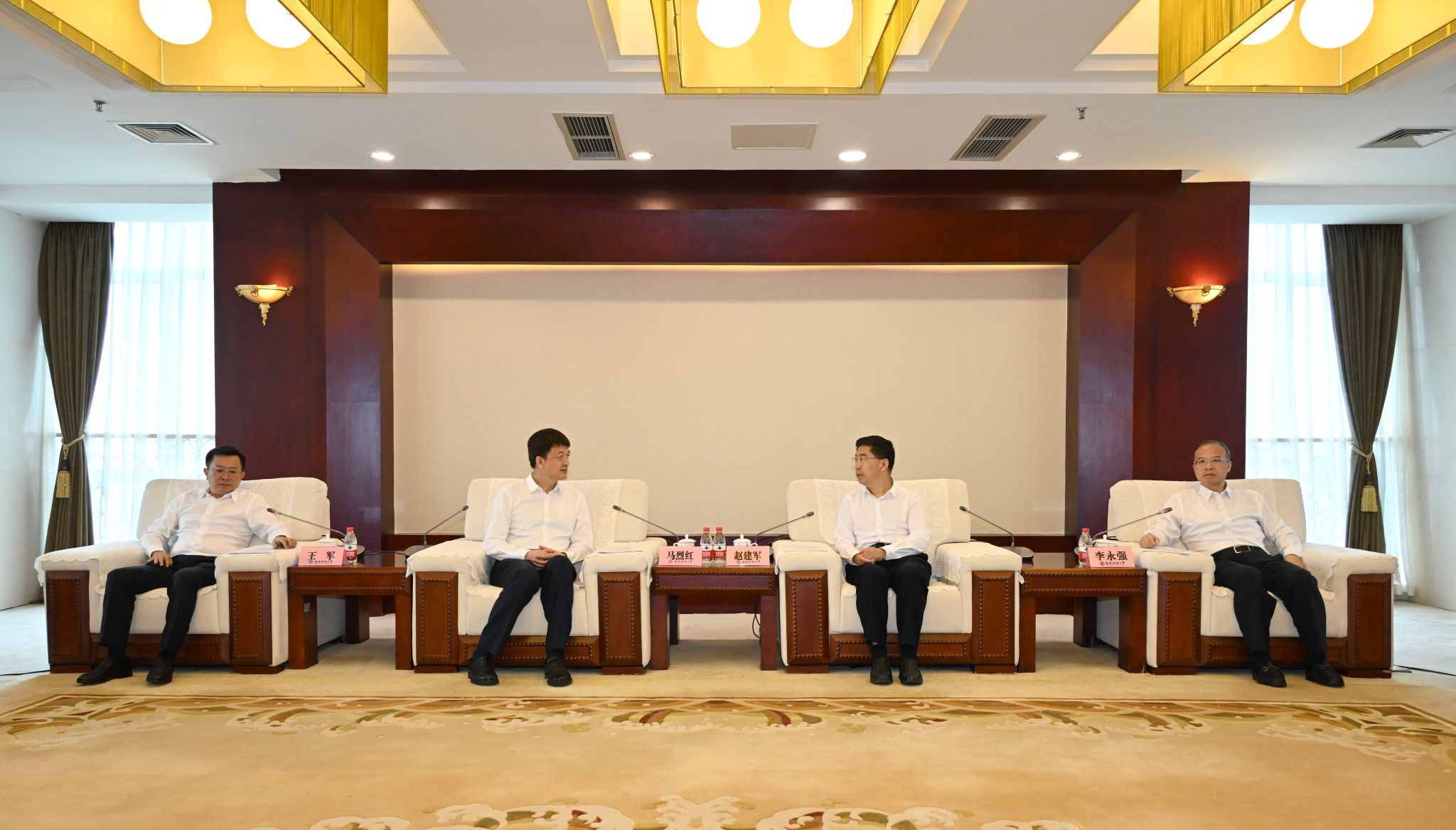 5月24日,温江区委书记马烈红,区委副书记、区长王军一行来校调研座谈。学校党委书记赵建军,党委副书记、校长李永强参加座谈。