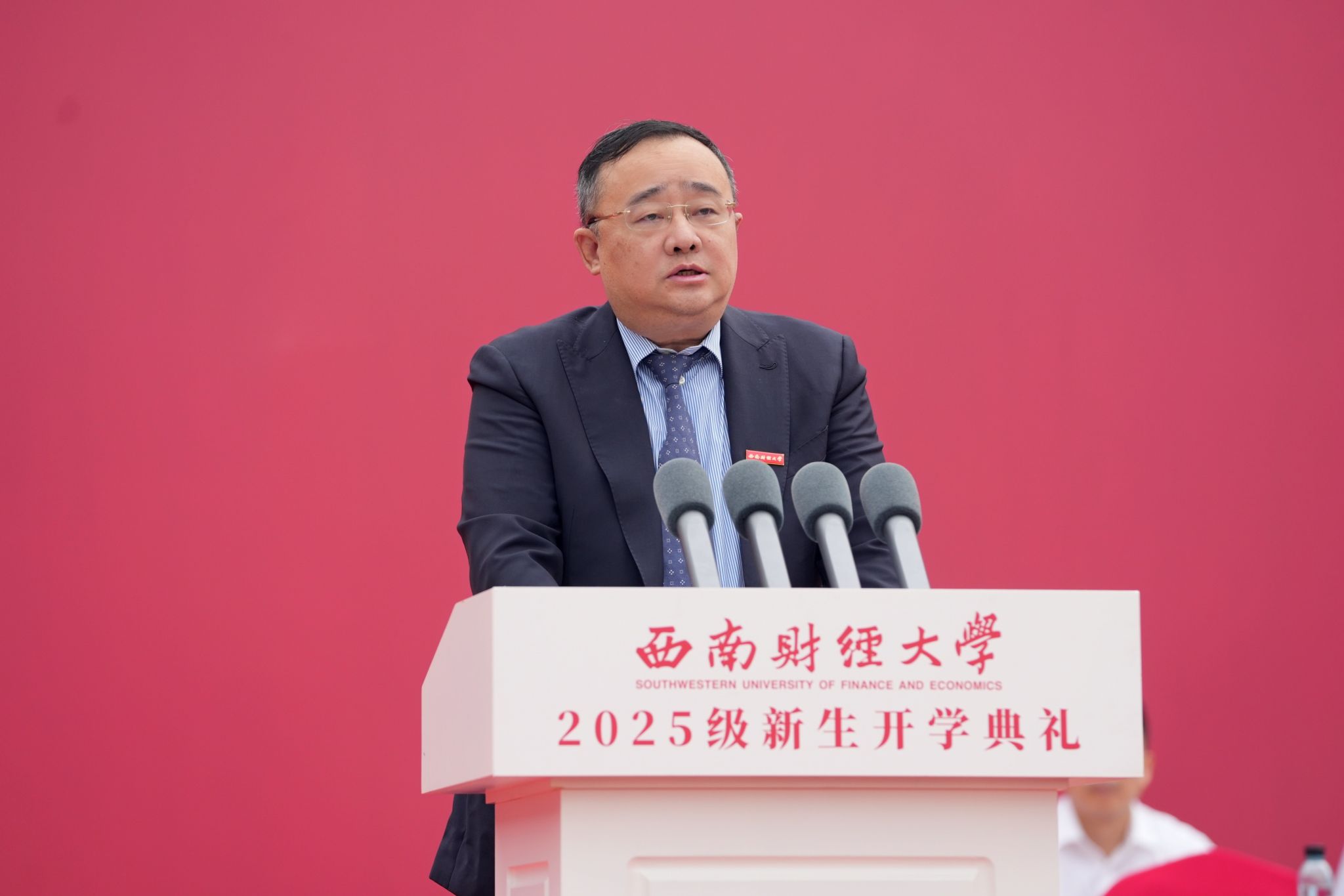 赵建军强调,抗战烽火岁月,中国青年用热血和生命铸就了不朽的精神丰碑。新时代的中国青年,生逢中华民族发展的最好时期,拥有更优越的发展环境、更广阔的成长空间,面临着建功立业的难得人生际遇。2025级新生是学校迈向新百年的第一届学生,承载着更高的祝福与期许,也肩负着更大的使命与担当。他希望同学们,坚定信仰信念,树牢“为国为民”的人生志向,高擎信仰之炬,从内心深处厚植对党的信赖、对中国特色社会主义的信心、对马克思主义的信仰,扣好人生第一粒扣子,自觉做习近平新时代中国特色社会主义思想的坚定信仰者、积极传播者、忠实实践者。坚持自信自立,勇担“强国复兴”的青春使命,坚定“四个自信”,不断增强做中国人的志气、骨气、底气,把新时代中国青年坚定的民族自信和强大的民族自豪转化为青春奋斗的不竭动力,自觉把个人事业融入民族复兴大业,用实际行动践行“请党放心,强国有我”的铮铮誓言。勇于创新创造,擦亮“永久奋斗”的青春底色,刻苦学习、躬身实践,探索真知、求真务实,勇于尝试、敢于挑战,用创新的思维去发现问题、解决问题,在知行合一中不断增强奋斗本领,让青春在创新创造中绽放光芒。希望同学们倍加珍惜西财、爱护西财、建设西财,让学校成为全体西财人共同的、永远的、美好的精神家园。
