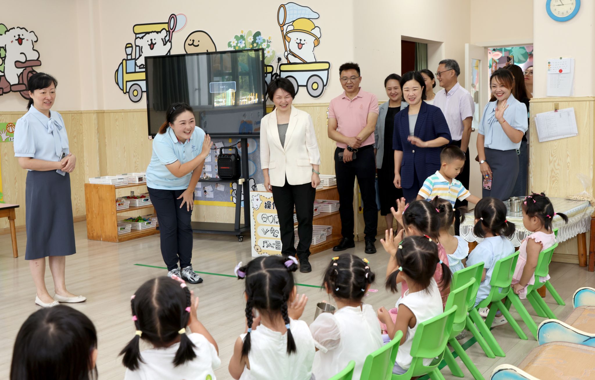 谢红一行前往各园实地走访慰问,深入班级与师生亲切交流互动,向全体幼儿教师致以诚挚的节日问候。她指出,在学校党委坚强领导下和校工会关心支持下,各幼儿园办园品质持续提升,“西财幼教”品牌不断巩固,为解决好学校教职工托育后顾之忧做出了突出贡献。幼儿教师是孩子们的第一任教师,是每个孩子开启幸福人生的重要“引路人”,要持续提高保教质量,为孩子们扣好“人生第一粒扣子”。她强调,西财幼教人要传承办园初心,树牢师德师风,促进幼儿身心健康发展,为学校事业发展提供坚实的后勤服务支撑。