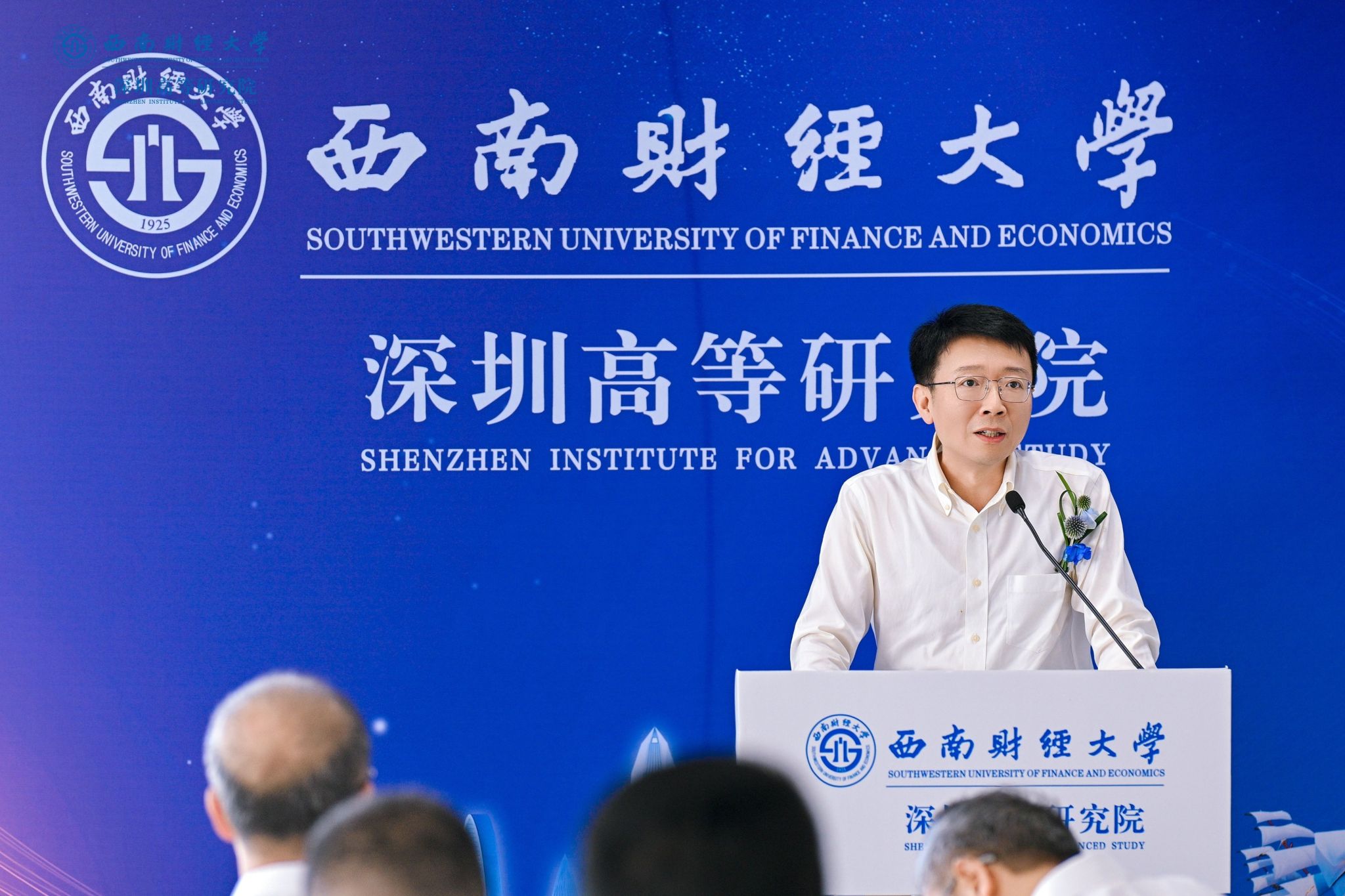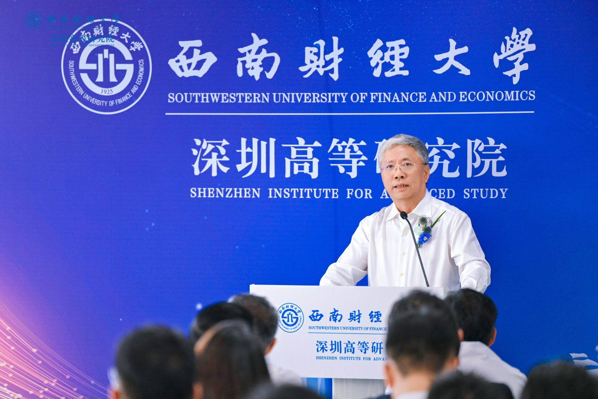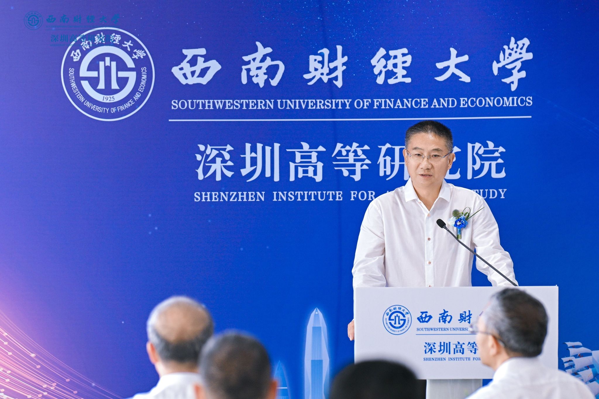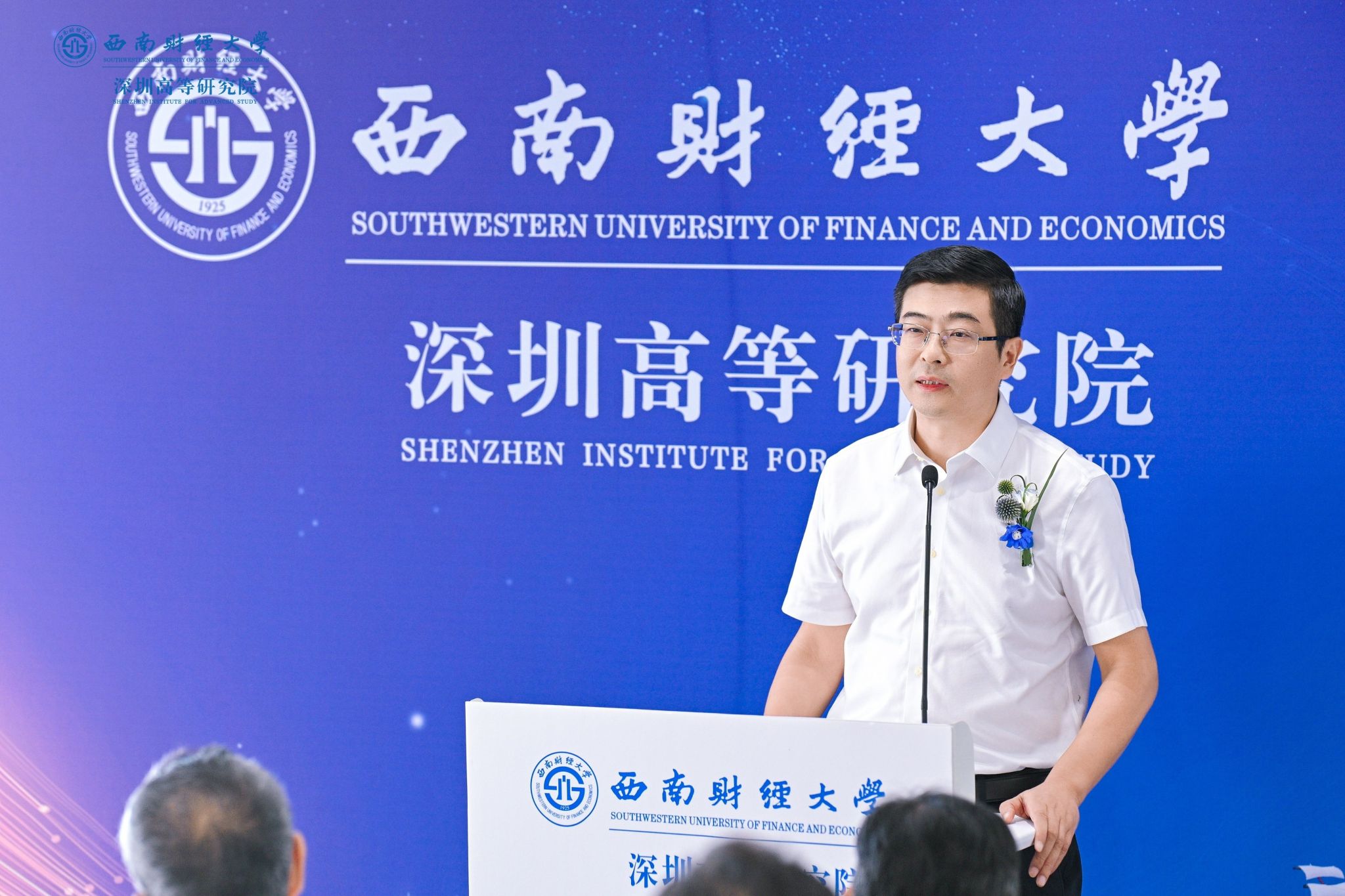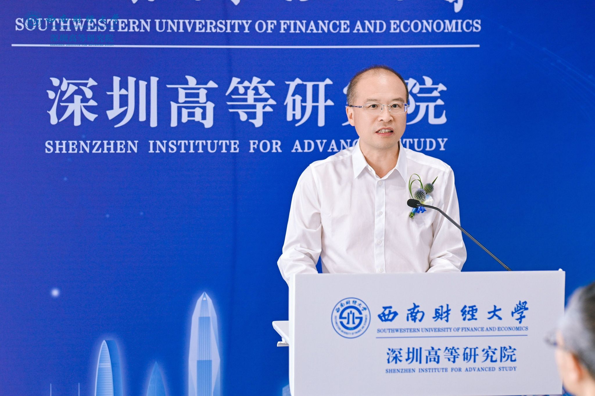 李永强致辞,向莅临现场的领导来宾、各界朋友、广大校友表示热烈欢迎,向一年多来支持深圳高等研究院筹备建设的深圳校友和社会各界致以诚挚感谢。他指出,深圳是改革开放的前沿窗口,是创新驱动的发展高地,是联通中国与世界的战略枢纽;设立深圳高等研究院,是学校响应国家所需、发挥高校所能、契合区域所盼的重大战略举措。研究院将充分借助深圳区位优势、产业基础与政策环境,聚焦经济金融前沿、财经科技交叉、高端人才培养与国际化合作,着力打造拔尖人才引育、产教深度融合、金融科技成果转化三位一体新型高端平台,为深圳建设中国特色社会主义先行示范区、为大湾区打造世界级城市群注入强劲的“西财动能”。他期盼与社会各界深化合作,积极融入、服务深圳及粤港澳大湾区发展战略,共同探索教育、科技、人才协同发展新机制新路径;建立更加紧密的协同关系,推动产学研用深度融合,实现创新链、产业链与人才链有机衔接;期盼广大校友持续关注并热心参与、支持学校发展,共同把深圳高等研究院建设成为西南财经大学在粤港澳大湾区的靓丽名片。