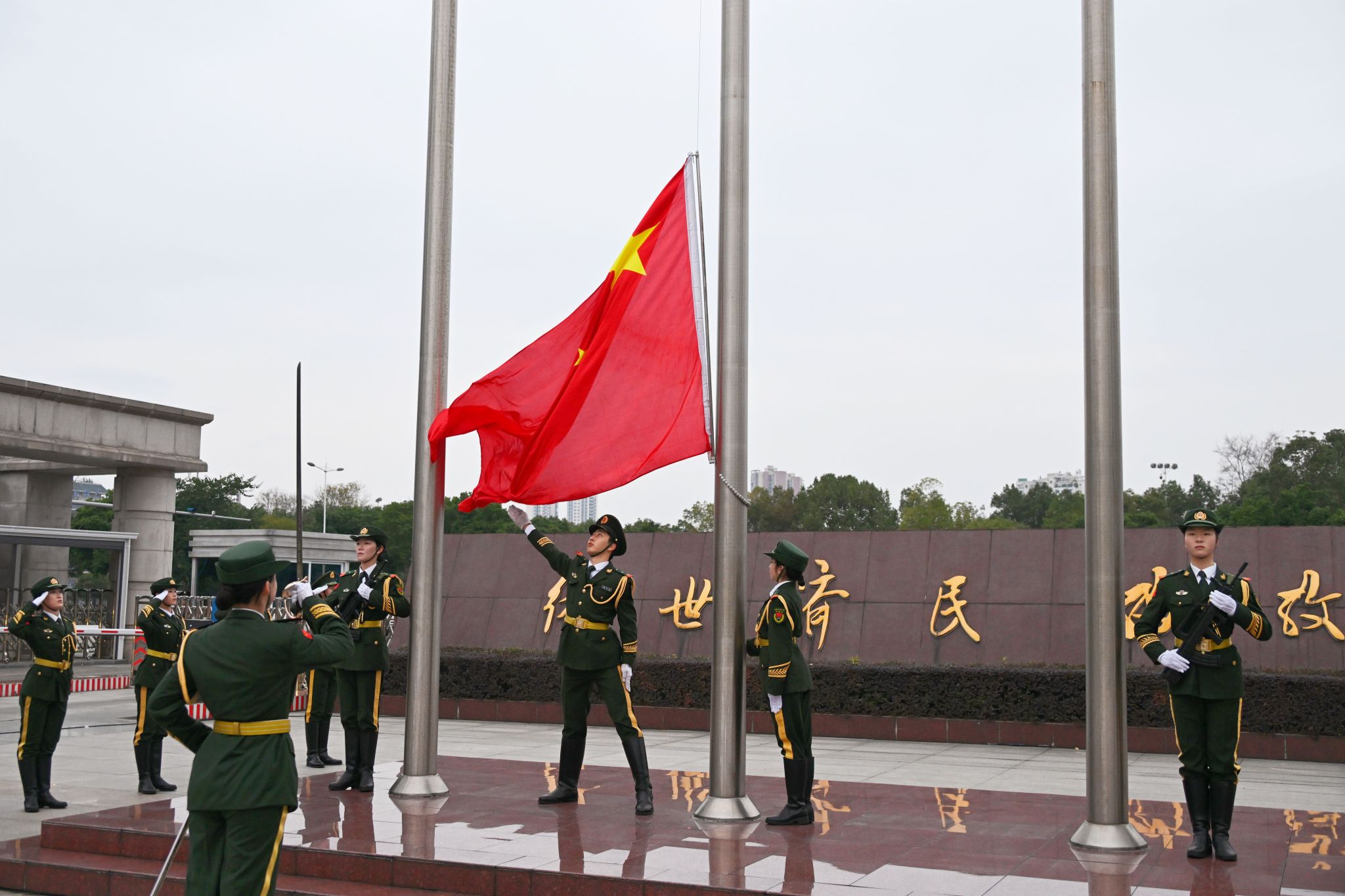 8时30分,仪式正式开始。国旗班成员和校卫队员迈着整齐步伐护送国旗入场。迎着2026年的晨曦,雄壮激昂的《义勇军进行曲》响彻校园,鲜艳的五星红旗冉冉升起。全体师生向国旗行注目礼,爱国热情溢于言表、新年希冀盈盈满怀。