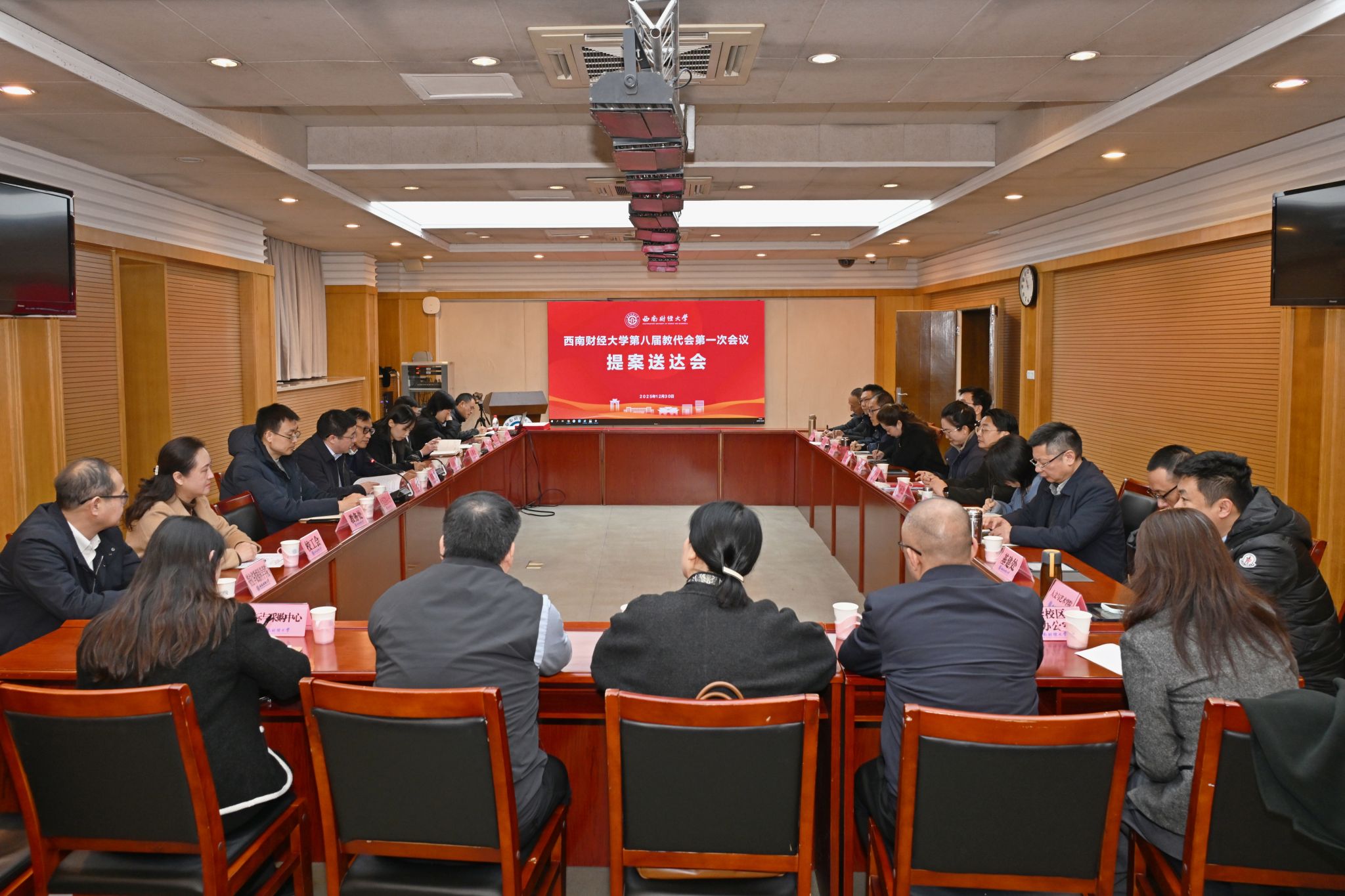 2025年12月30日上午,学校召开第八届教代会第一次会议提案送达会议,向承办本次提案的22个职能部门交付提案送达书。学校党委常委、副校长、工会主席桂富强出席会议,第八届教代会提案工作委员会全体委员和承办单位负责人参加会议。
