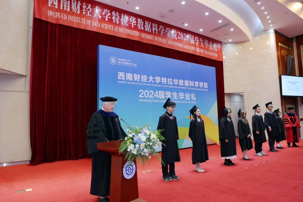 6月20日上午,西南财经大学特拉华数据科学学院举行2024届毕业生毕业礼。西南财经大学原校长卓志教授出席并致辞,学生工作部负责人、学院三个专业中美双方项目主任、特拉华大学勒纳商学院院长及美方代表出席仪式,学院领导班子、全体教职工、2024届全体毕业生及家长代表参加仪式。