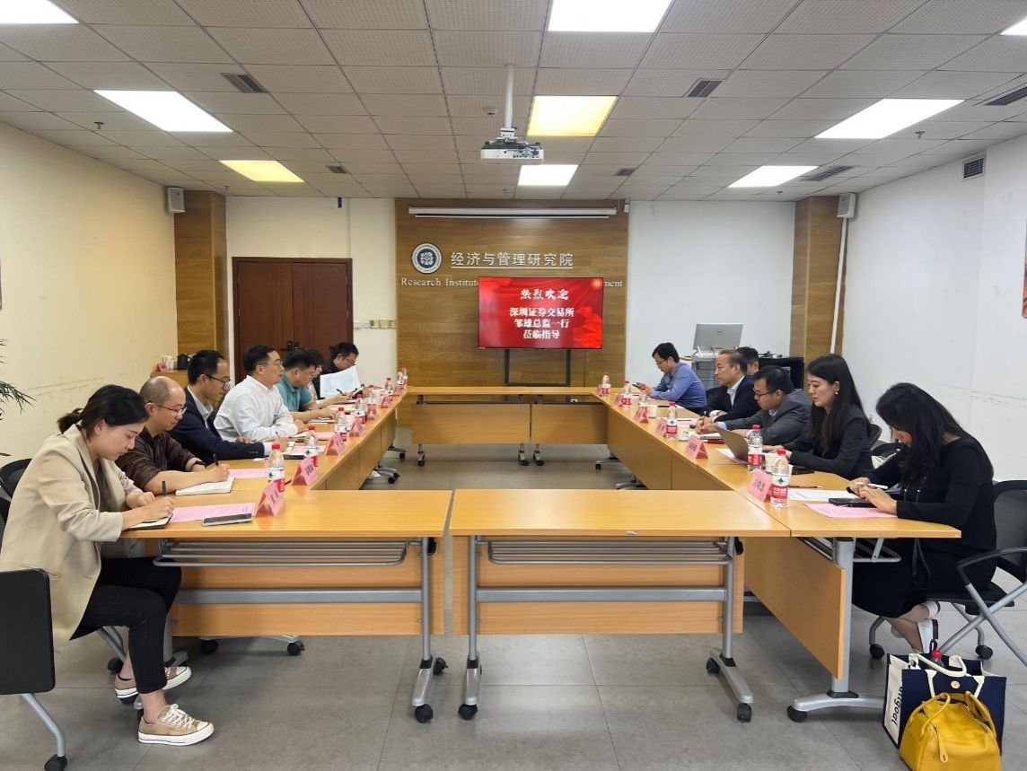 10月17日下午,深圳证券交易所基金部总监邹雄、富国基金管理有限公司总经理助理张鹏和东方财富信息股份有限公司市场部总监安佳媛等人到访经济与管理研究院。西南财经大学学生职业规划与就业指导中心主任徐利军、国内合作与发展处处长赵海程,经济与管理研究院常务副院长董艳、党委书记黄文、党委副书记魏望以及相关教师参加了座谈交流。