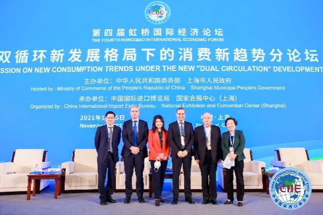 11月5日,第四届虹桥国际经济论坛双循环新发展格局下的消费新趋势分论坛在上海国家会议中心举行。商务部副部长兼国际贸易谈判副代表王受文,上海市副市长宗明,意大利驻华大使方澜意等领导出席讲话,国务院发展研究中心市场经济研究所所长王微、国际知名企业负责人等参会。我校成渝经济区发展研究院院长、(中国)消费经济学会会长杨继瑞作为特邀嘉宾参加论坛访谈,工商管理学院消费经济研究所所长、消费经济学会常务副秘书长张恩碧受邀参会。