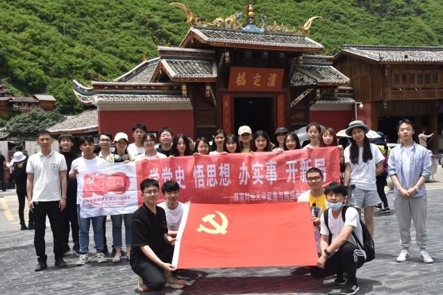 为深入开展党史学习教育,庆祝中国共产党成立100周年,增强师生党史学习教育的热情和积极性,创新学习教育开展方式,6月5日至6日,证券与期货学院组织师生党支部书记、学生干部代表一行25人赴红军飞夺泸定桥纪念馆及红军强渡大渡河纪念馆开展党史学习教育,深刻感悟和传承伟大的长征精神。