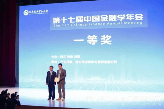 10月31日至11月1日,第十七届中国金融学年会在首都经贸大学举办。中心洪正、张琳老师和博士生肖锐的《产业升级、地方政府竞争和最优金融分权》论文获得年会优秀论文唯一一项一等奖。