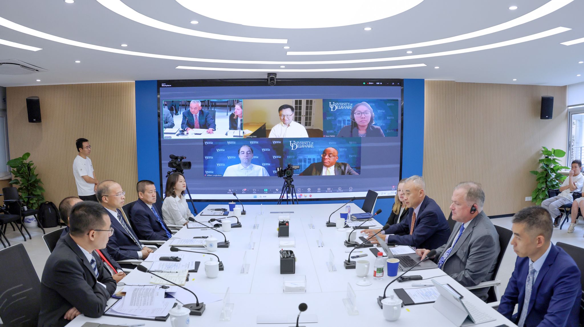 6月18日上午,西南财经大学特拉华数据科学学院联合管理委员会召开2024-2025学年工作会议。西南财经大学党委副书记、校长、联合管理委员会主席李永强,特拉华大学校长、联合管理委员会副主席Dennis Assanis,西南财经大学党委副书记明海峰,特拉华大学副校长Rodney Morrison等两校联合管理委员会委员以及列席代表出席会议。会议由特拉华数据科学学院院长杨石磊主持。