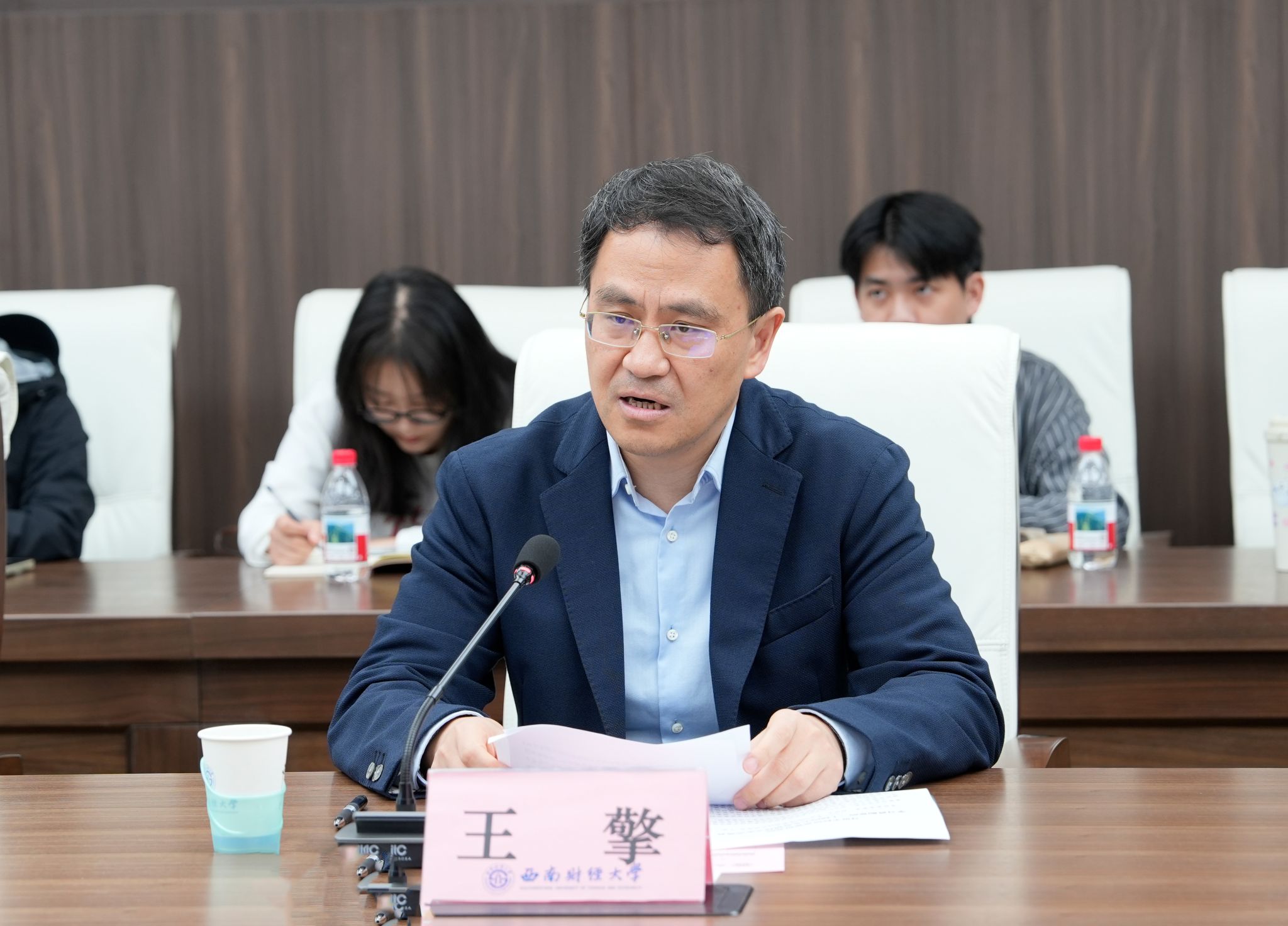 贾晋作总结发言,他表示研究院将以“十五五”发展规划为蓝图,坚持党建引领,围绕国家重大战略部署,依托“揭榜挂帅”机制,深化跨学科协同创新,推动前沿理论突破,为构建中国特色哲学社会科学提供西财智慧。