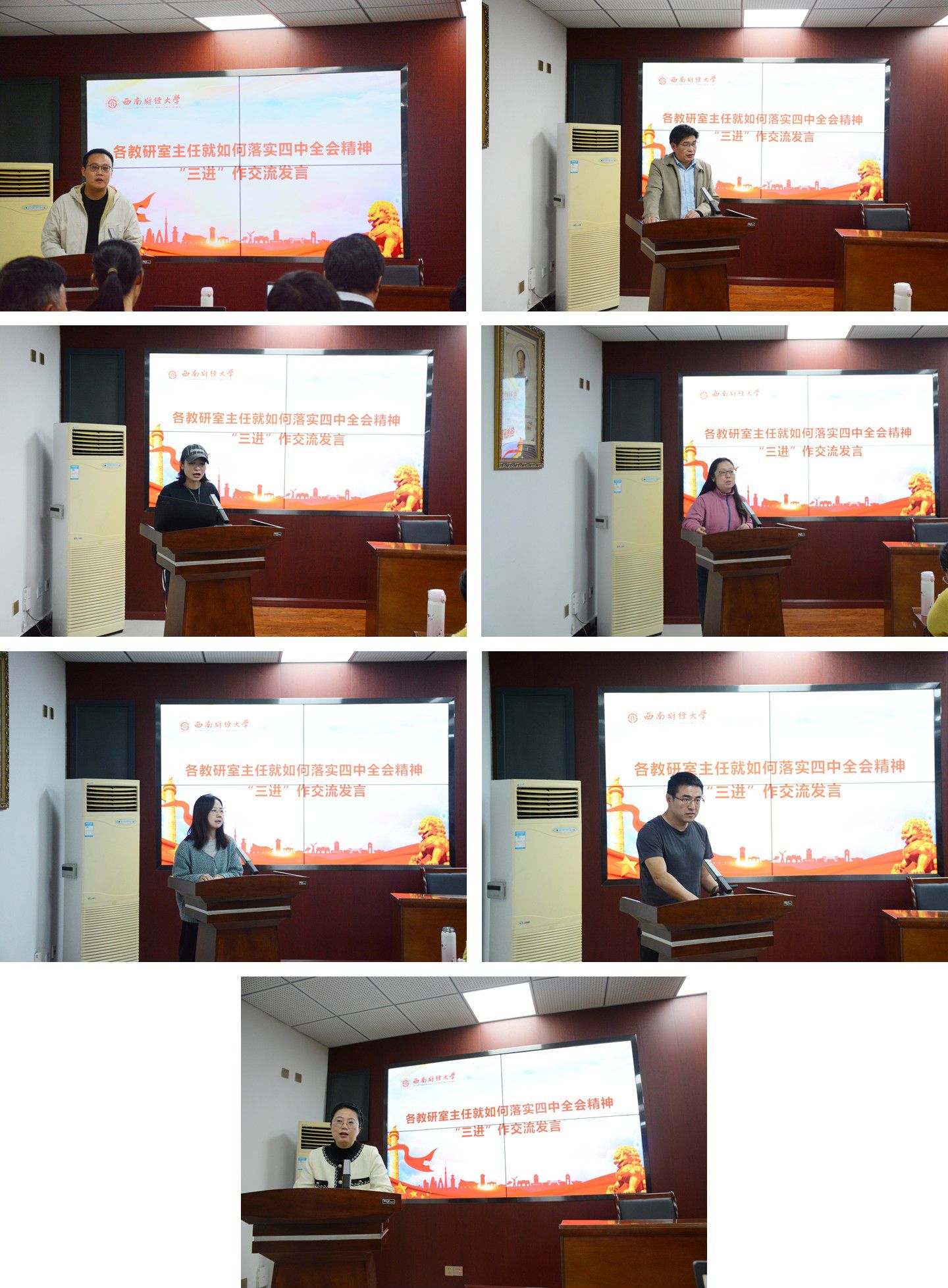 7位教研室主任就思政课如何落实四中全会精神“三进”作交流发言,一致表示,要按照学校党委部署要求和学院工作安排,及时全面把全会精神融入课程教学体系和教育教学全过程,切实提升课堂教学质效。