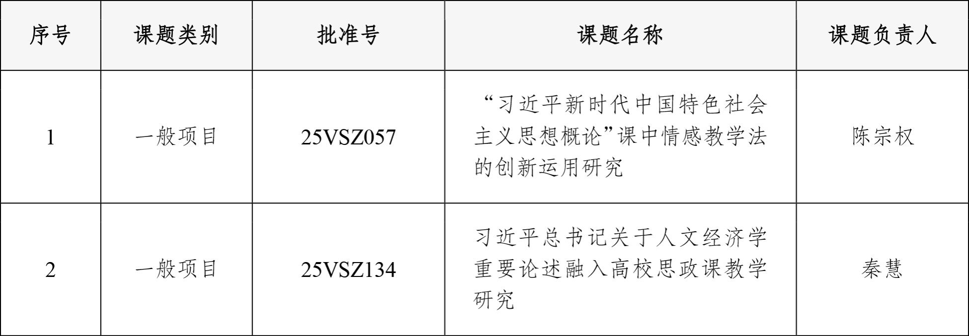 近日,全国哲学社会科学工作办公室公示2025年国家社科基金高校思想政治理论课研究专项立项名单,我院两项研究项目成功获批。立项详情如下: