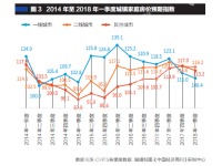 从城市级别来看,自2016年开始,一线城市房价预期持续下跌,从2016年一季度的135.1持续下跌至2018年同期的106.4,且在2017年四季度已经低于二线及其他城市。二线城市房价预期相对平稳。其他城市房价预期从2015年四季度的89.6持续上升,并在2017年同期高于一线城市和二线城市,达到117.0(见图3)。