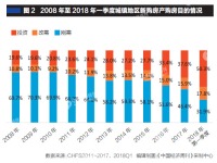 2017年四季度至2018年一季度,有3.6%的城镇家庭新购房产,有2.0%的城镇家庭出售或转让房产。