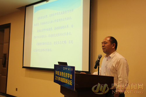 四川新闻网成都5月13日讯(记者 卢永洪 摄影报道)随着改革开放的进程加快,买方市场形成,消费需求升级决定了产业结构的发展方向……昨(12)日,(中国)消费经济学会2018年成都高峰论坛成功举行。来自全国各地的11名专家教授和企业代表齐聚一堂,紧扣“人民美好生活需要:消费转型升级的机遇挑战与对策”主题发言演讲。消费经济学会原会长、西南财经大学原校长王裕国教授首先发表主题演讲。四川新闻网记者在现场还收获到两大关键词:绿色消费和住房租赁消费。
