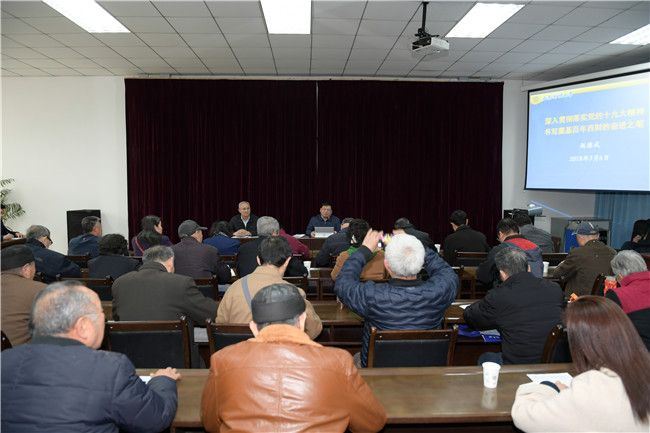 新学期伊始,学校组织召开离退休教职工深入学习贯彻党的十九大精神专题报告会。报告会由学校党委书记赵德武主讲,离退休各党支部书记、支委、教职工代表40余人参加会议。党委副书记曾道荣主持报告会。