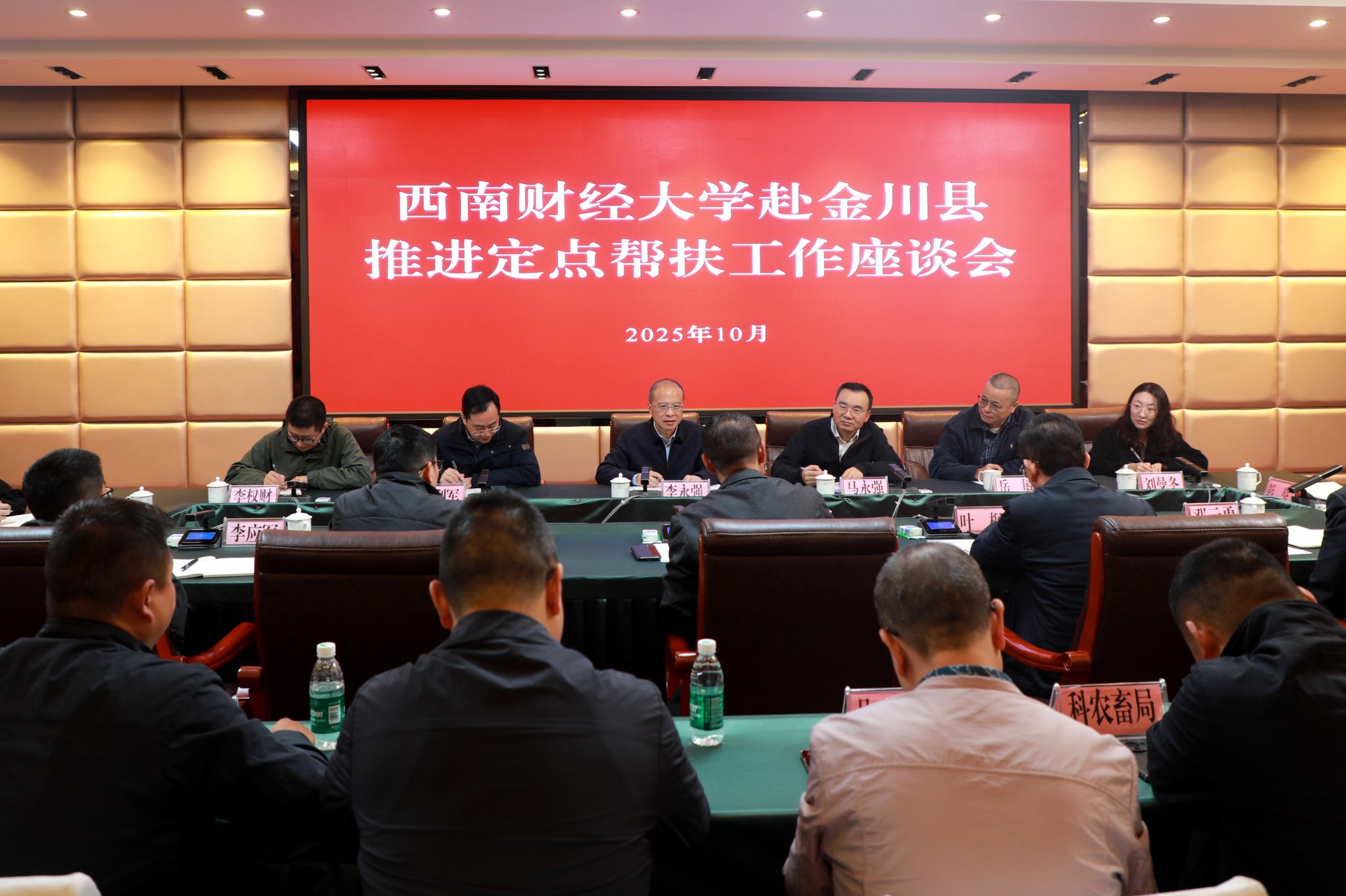 22日下午,李永强一行前往独松乡嘎伍岭村,实地查看学校帮扶项目,与独松乡党委座谈交流,看望慰问学校驻村干部、听取驻村干部工作汇报,为学校援建嘎伍岭村民族大团结活动广场揭牌。金川县人民政府副县长叶枫参加调研。23日,学校与金川县定点帮扶座谈会召开,金川县委副书记、县长史志刚,县委常委、县委办主任余璐,叶枫和县级相关部门负责人、学校驻村干部等参加座谈会。李永强对定点帮扶工作取得的成效给予充分肯定并为西南财经大学基层治理现代化教授工作站授牌。他表示,自定点帮扶工作开展以来,学校党委高度重视,充分发挥学校学科优势和人才优势,聚焦智力帮扶、产业帮扶、教育帮扶、民生帮扶,不断助力金川县经济社会发展。下一步,学校将在既往帮扶经验的基础上,结合金川实际需求,突出西财特色优势,聚焦战略咨询与规划引领、人才培养与教育合作、文化繁荣与生态建设、合作模式与长效机制等方面,持续深耕、久久为功,推动定点帮扶工作取得新成绩。史志刚介绍了近年来学校定点帮扶金川县工作开展情况,对学校长期以来在智力支持、教育帮扶、消费帮扶等方面给予的大力帮扶表示衷心感谢。未来希望双方紧扣“十五五”规划编制,将定点帮扶更多转向战略规划、文旅融合、教育帮扶等重点领域,为金川县乡村振兴及文旅融合提供政策解读、项目论证、人才培训等方面支持,助推金川不断实现高质量发展。
