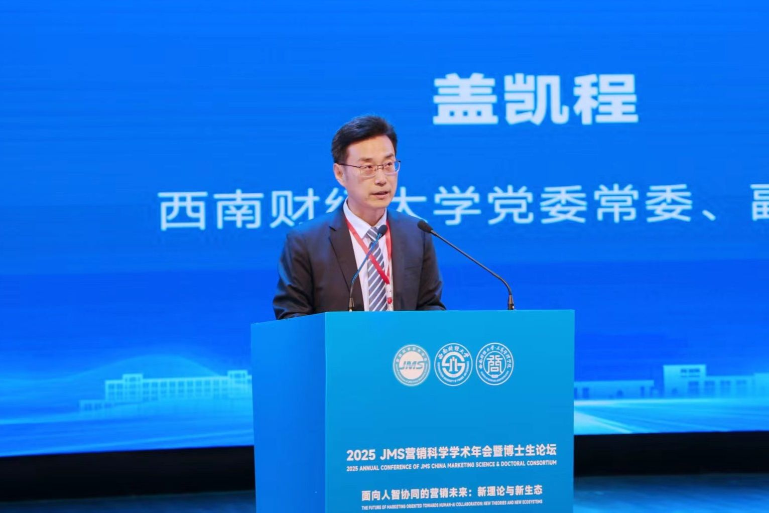 学校党委常委、副校长盖凯程在开幕式致欢迎辞,《营销科学学报》(Journal of Marketing Science, JMS)编辑委员会主任、北京大学张影教授出席并致辞。盖凯程表示,面对以人工智能为核心驱动的新质生产力变革,营销科学正迎来理论与生态重构的关键时期。学校将以“新财经”战略为引领,深化数字技术赋能,推动营销理论与“金融+”等特色场景融合创新,积极探索人智协同背景下的营销新范式。2025JMS营销科学博士生论坛上,论坛主席清华大学教授孙亚程等校内外专家学者发言交流。
