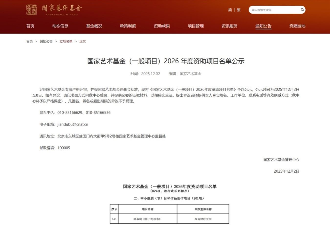 国家艺术基金由国务院批准设立,与国家自然科学基金、国家社会科学基金并列为“国家三大基金”,是我国文化艺术领域层次级别最高的资助项目。基金旨在繁荣艺术创作,打造和推广原创精品力作,培养艺术创作人才,推进国家艺术事业健康发展,其覆盖面广、影响大,具有重要示范和引导作用。此次国家艺术基金(一般项目)2026年度资助项目评选出的综合立项率约为7.6%。